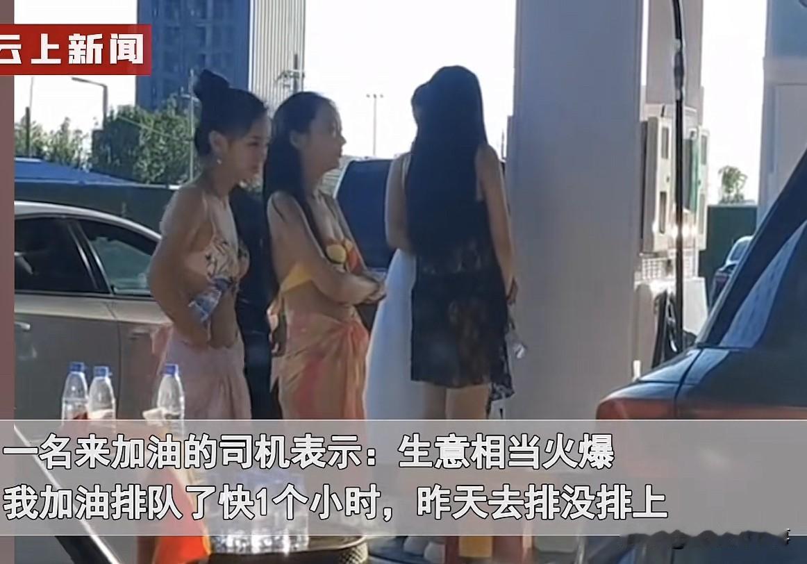 现场视频显示,在加油机旁站着几名名穿着泳装的年轻女子,而她们的作用,更像是在现场引导,陪司机聊天,或许把泳装和加油站联系在一起,有些格格不入,但效果确实出奇的好