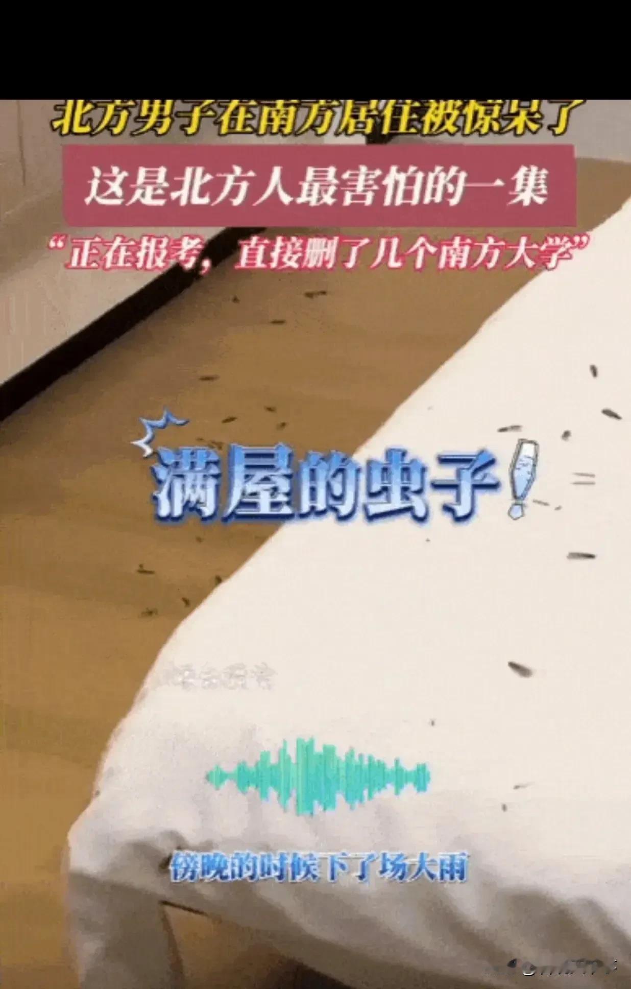 对此,有北方网友表示:孩子明年就要高考了,本来是打算往南边考,但现在看看真的有点怕了,北方顶多就是扑棱蛾子,蜘蛛、潮虫这些,孩子从小看到虫子就害怕,要是真去了南方,肯定受不了