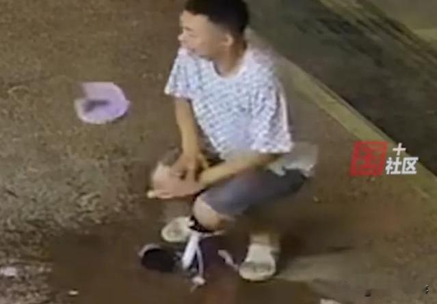 视频中,男子蹲在地上,水壶就放在两腿中间,双手不停的将水壶进行按压,随后还笑着和一旁的朋友开玩笑“炸了吗?就你胆子小”!