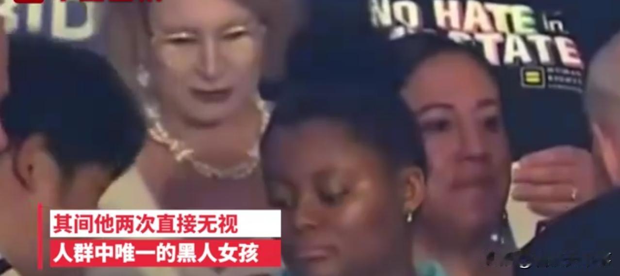 视频里,拜登逐一与前排支持者拥抱合影,但当他走到这位黑人女孩面前时,面对她的友好微笑,拜登竟然两次直接无视,别说拥抱和合影了,连一个最起码的握手都没有