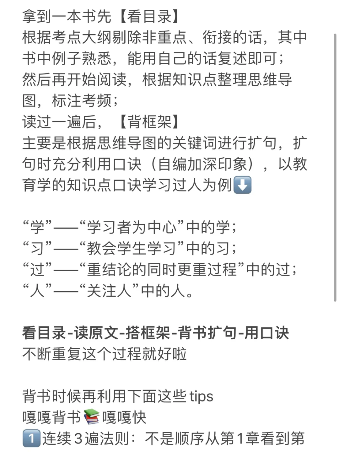 主要是根据思维导图的关键词进行扩句,扩句时充分利用口诀(自编加深印象),以教育学的知识点口诀学习过人为例⬇️
