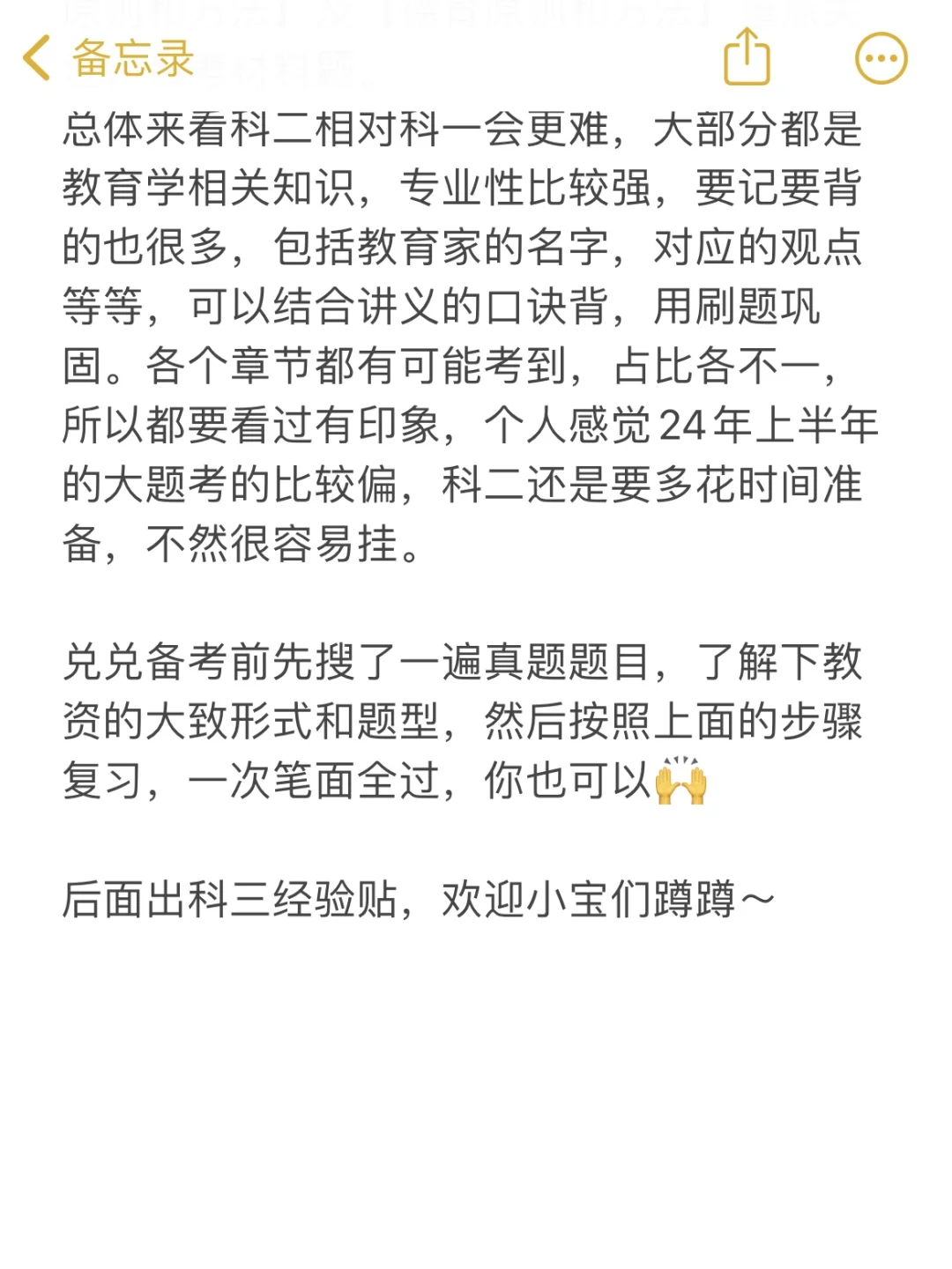 兑兑备考前先搜了一遍真题题目,了解下教资的大致形式和题型,然后按照上面的步骤复习,一次笔面全过,你也可以🙌