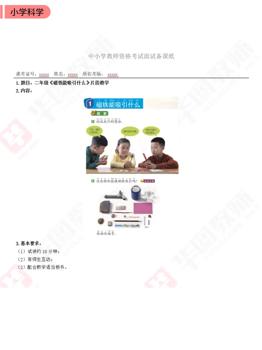 不同的考场情况不同,大部分考官会要求考生在面试结束后上交备课纸,有的考官会在考生进入考场后就要求其上交教案,大家按考场要求来即可。