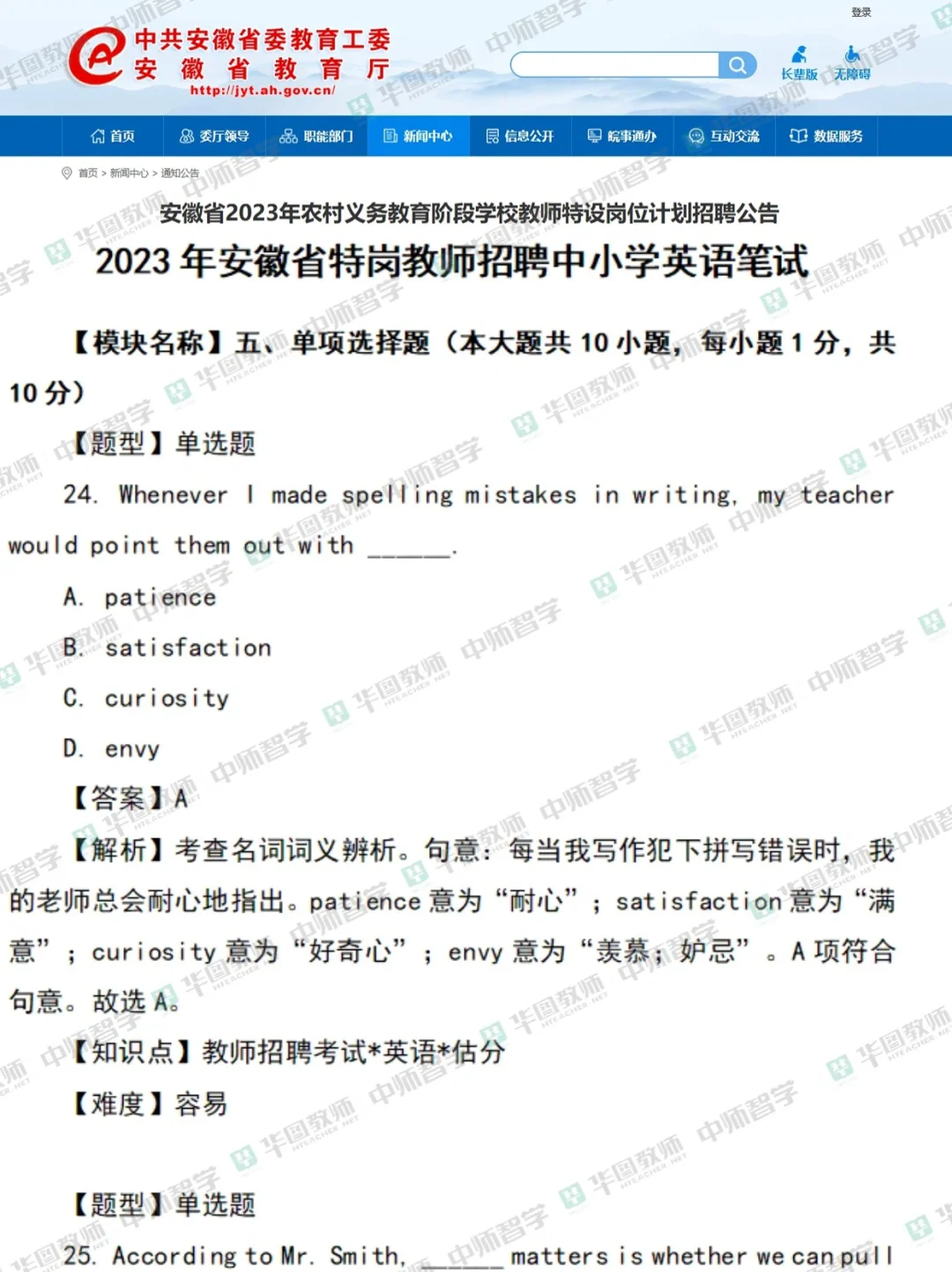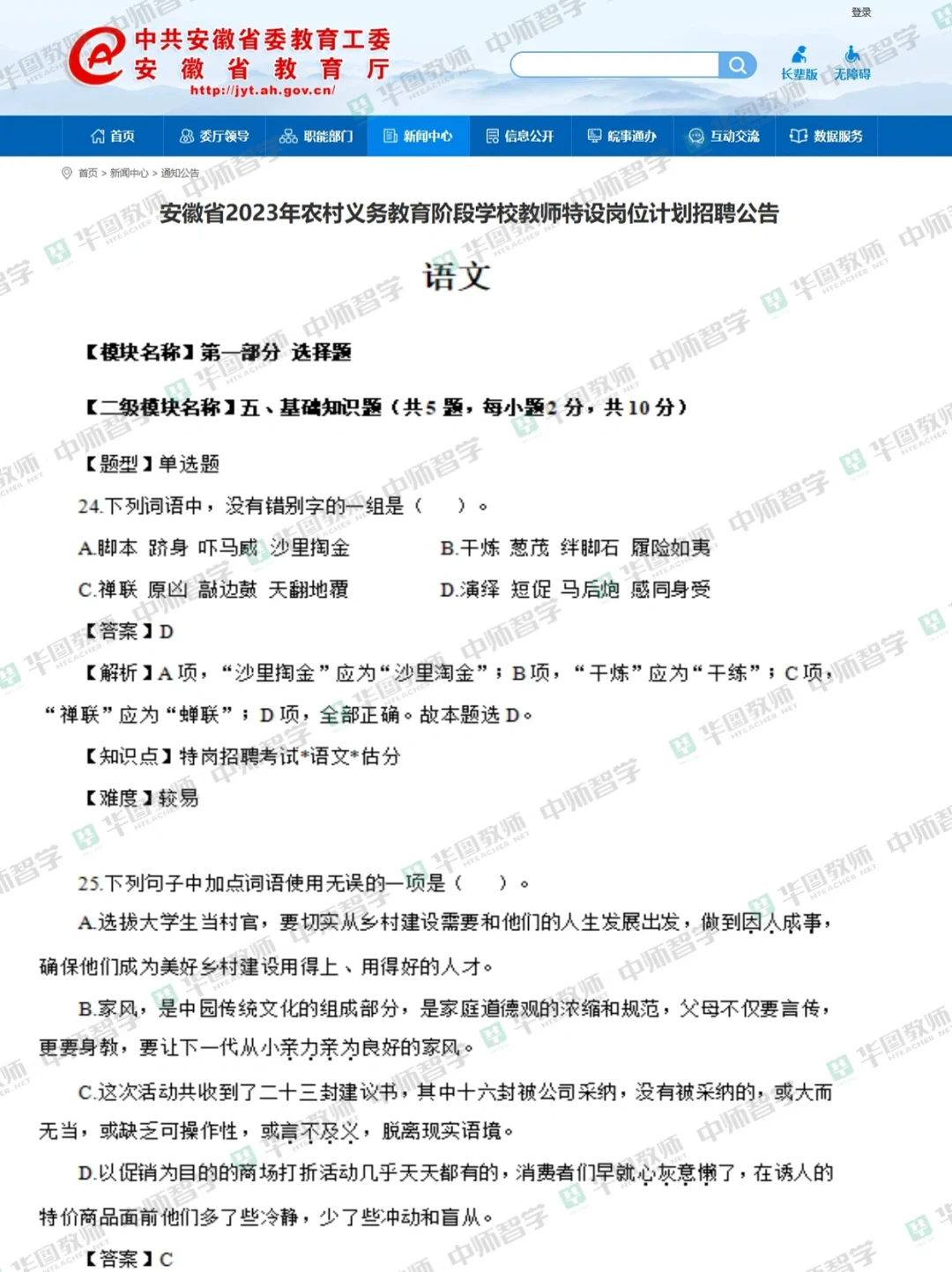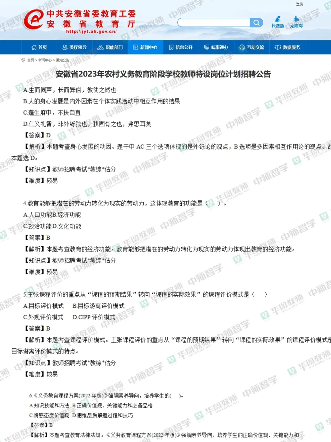 安徽特岗教师笔试