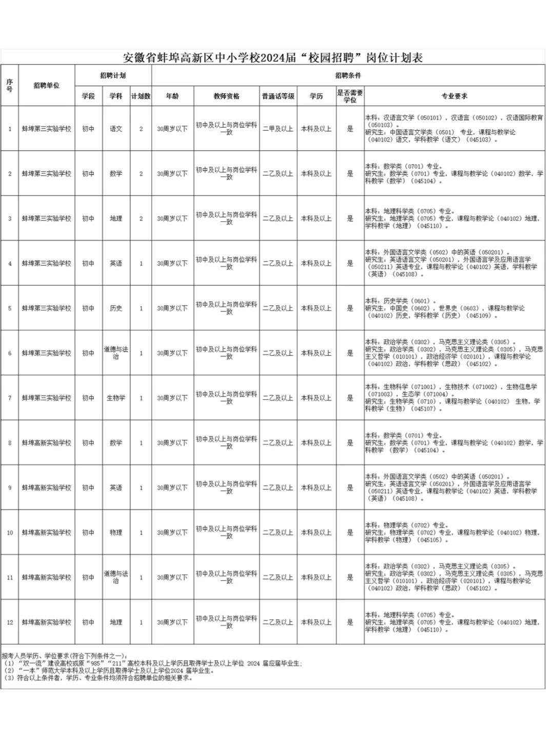 岗位要求看第二页~需初中语数英政史地物理生物老师