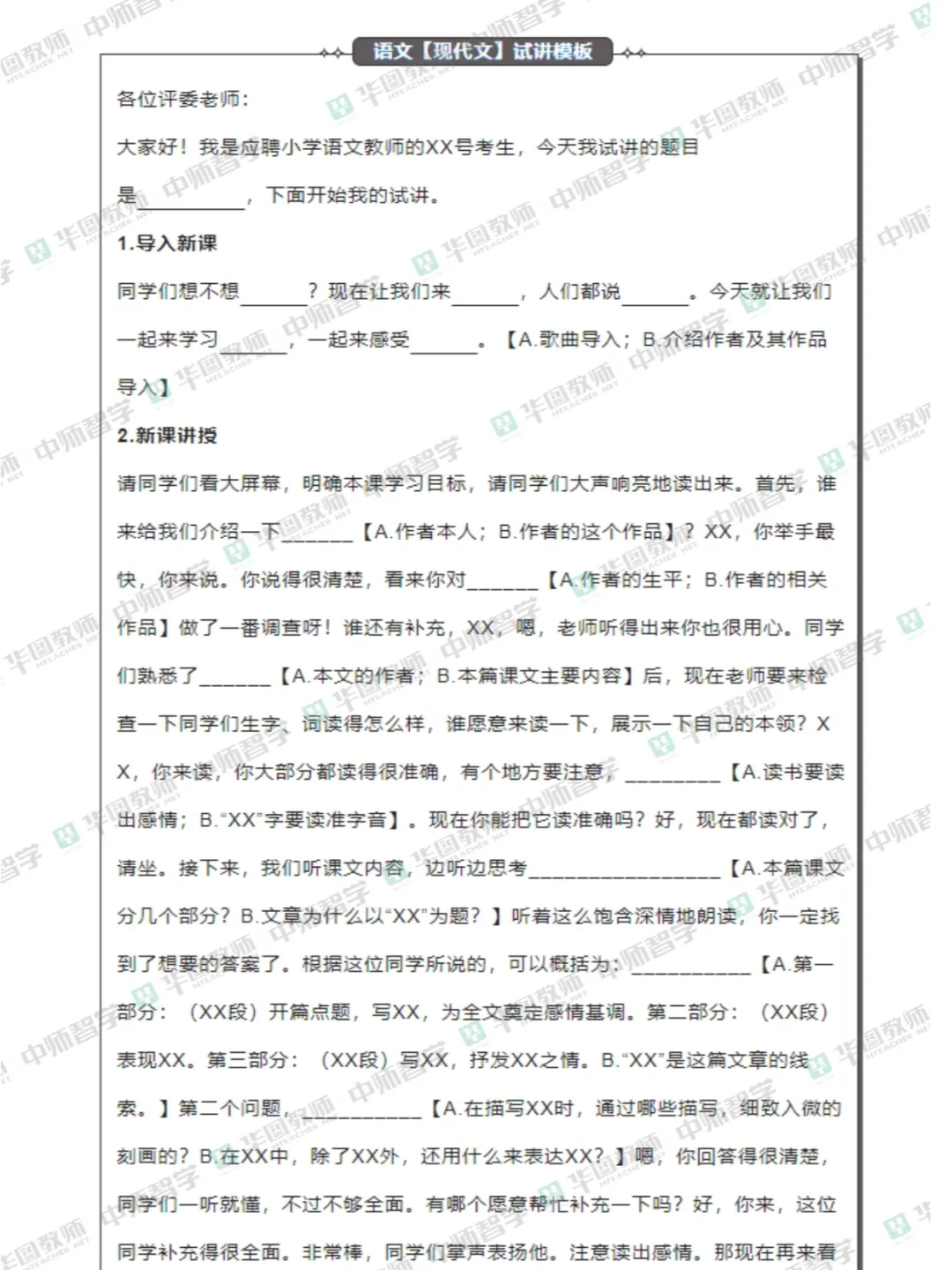 教招面试&教资面试!语文教案、试讲模版