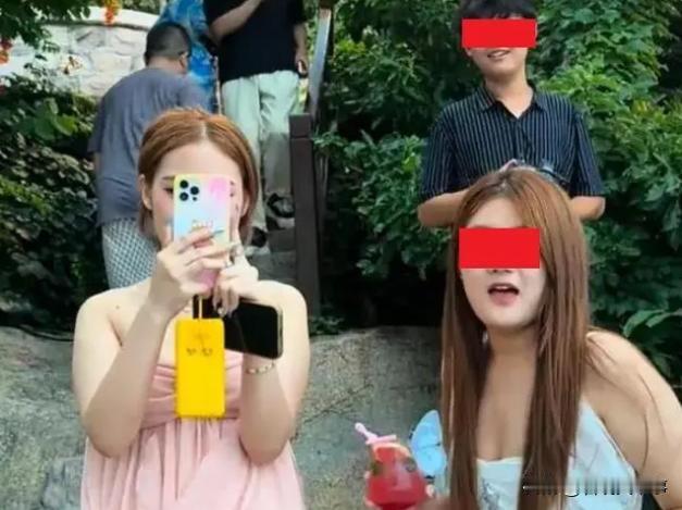 视频中,两名女大学生带着两位男摄影师,一人拿着一杯果酒,轮番进行拍照,但因为孕妇下台阶很小心,走的比较慢,随后双方发生口角的冲突,而两名女生的话,实在让人一言难尽