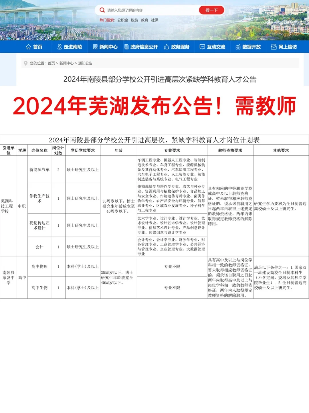 芜湖南陵发布!需要参加笔试《教综》➕《学科》
