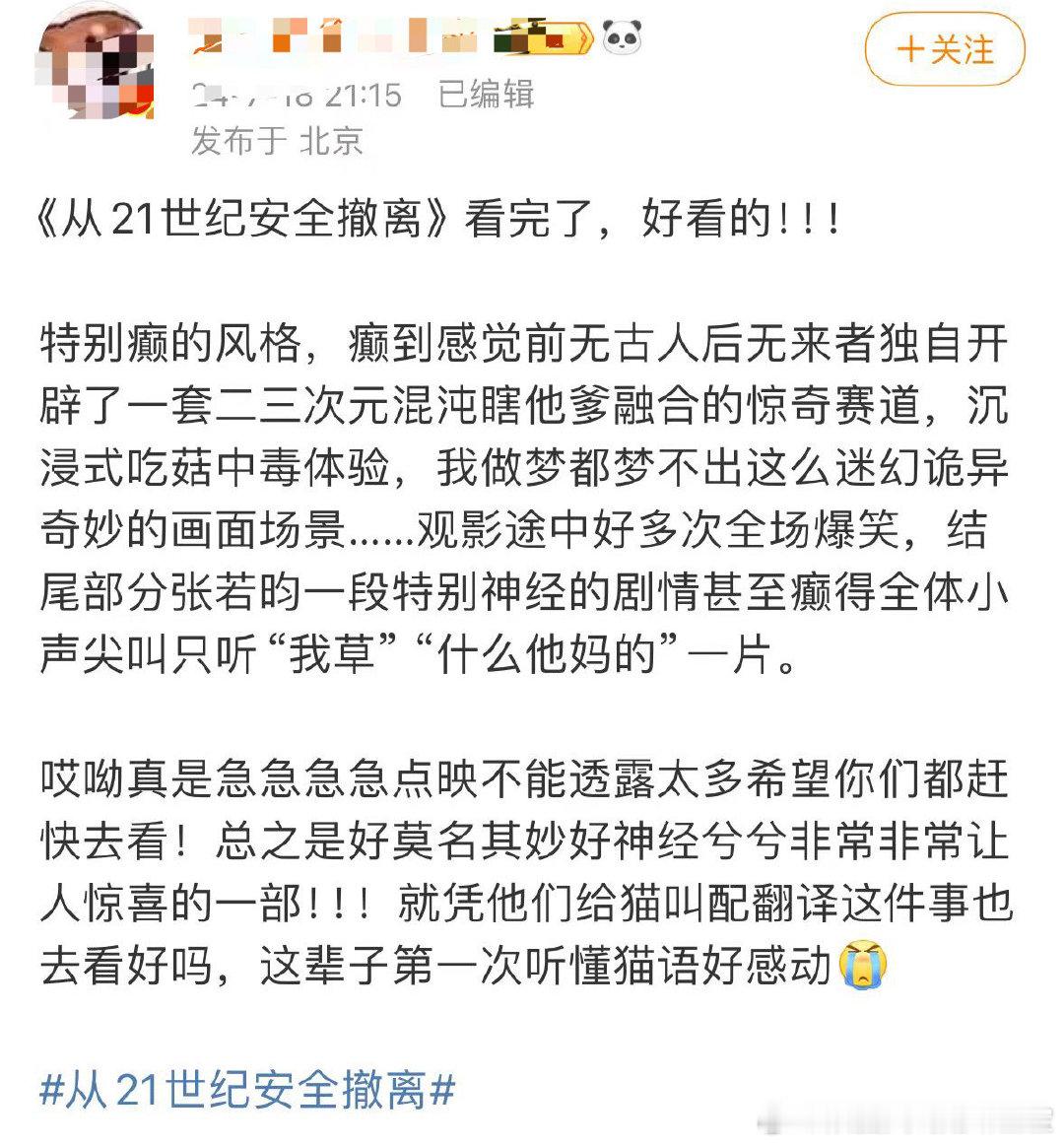 #第一次见像21世纪这种新鲜的影评# 笑死了,谁还没看过《从21世纪安全撤离》?这电影简直就是当代人的快乐源泉,脑洞大开,笑料不断,看完保证你心情大好,烦恼全消!