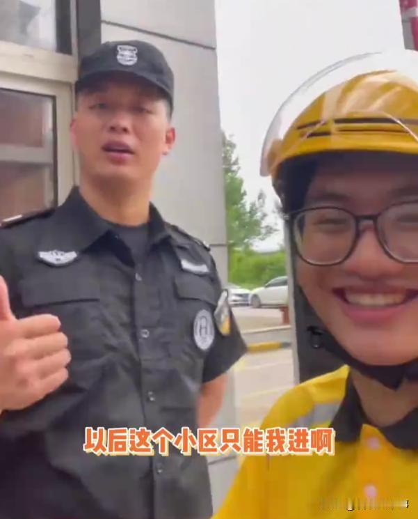 强强联手了!江苏南京,一位大学生假期兼职送外卖,巧合的是,途径一小区时发现保安很眼熟,靠近一看,这不是寝室室友吗,男生玩笑道:这个小区以后只能我送了,网友:一个从商一个从政