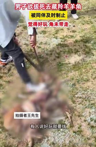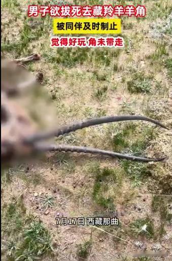 西藏那曲,一男子发现空地上有一只死去的藏羚羊,觉得好玩,便上前要将羊角拔下来,同伴看到后,被吓得不轻,连忙上前制止,这才算是逃过一劫,网友:这要是没有同伴,起底三年!