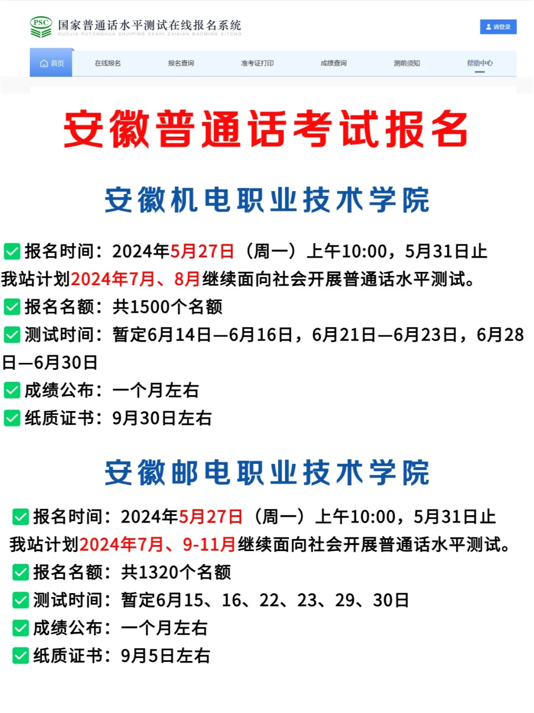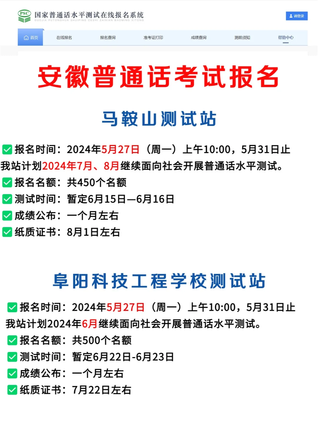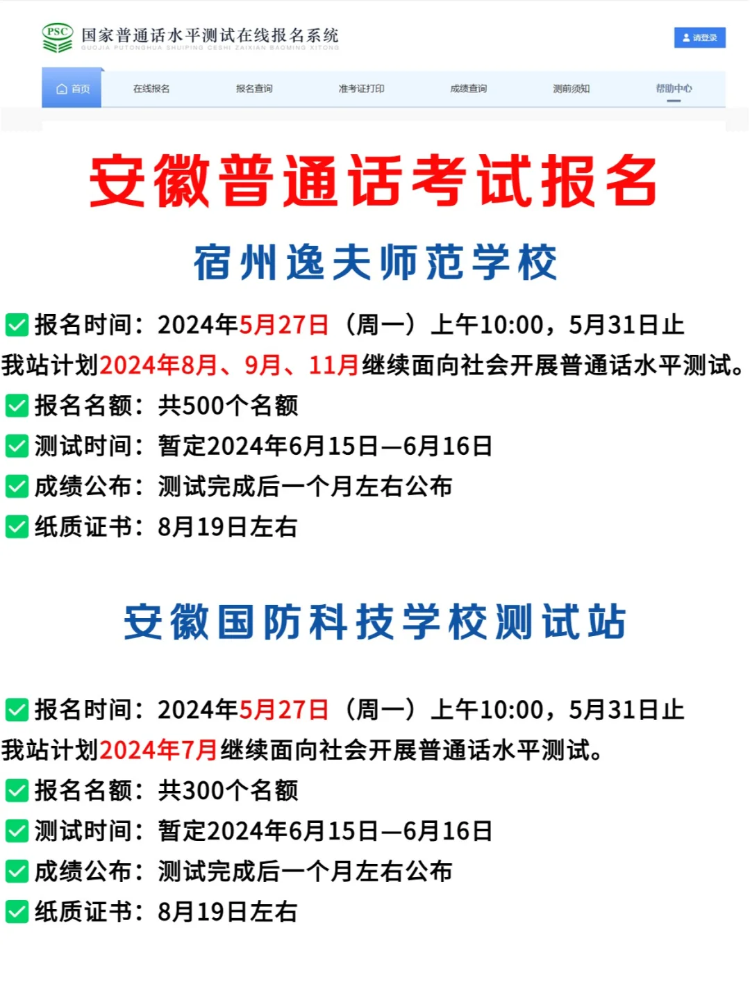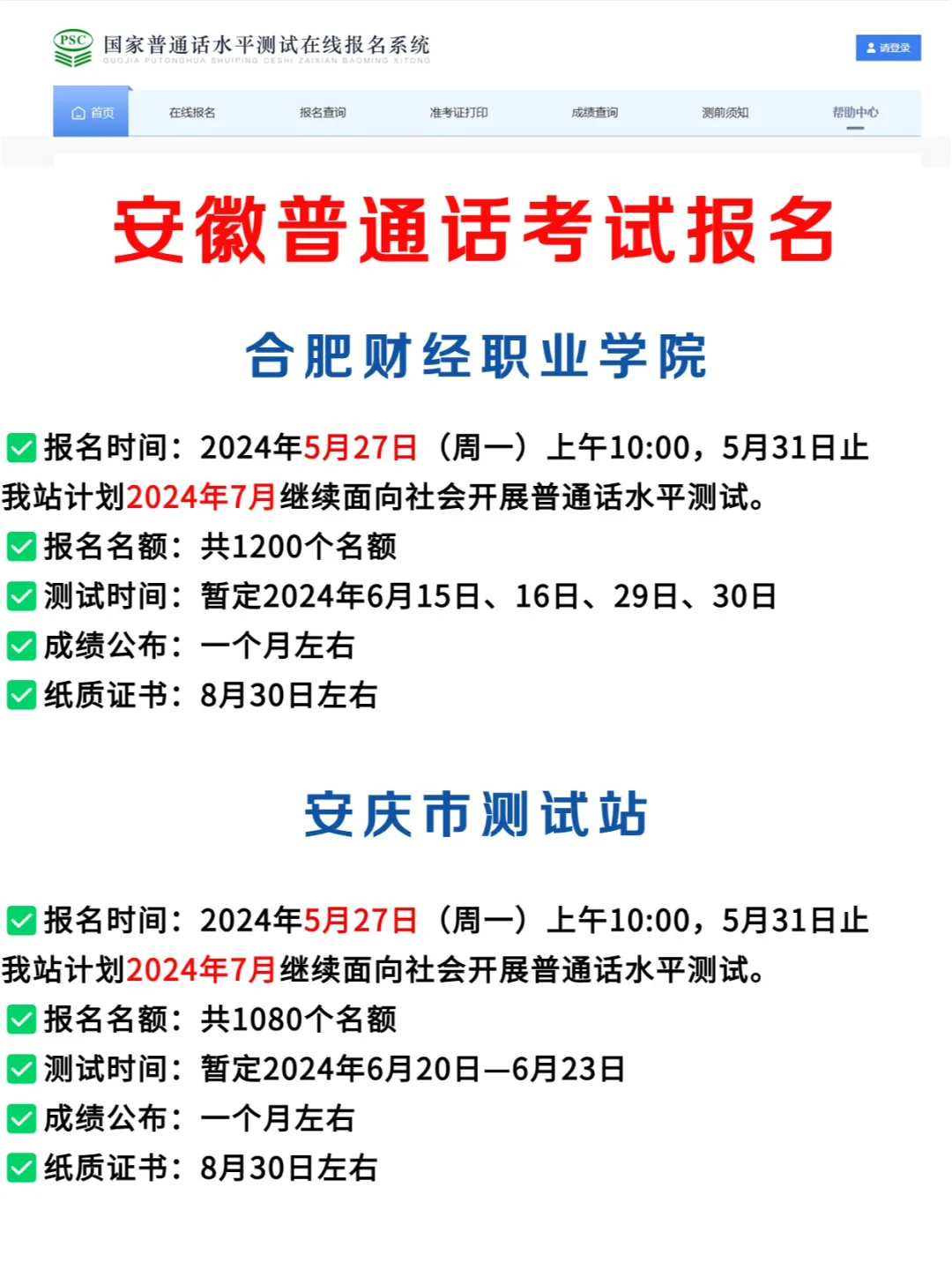 安徽5月份普通话考试汇总