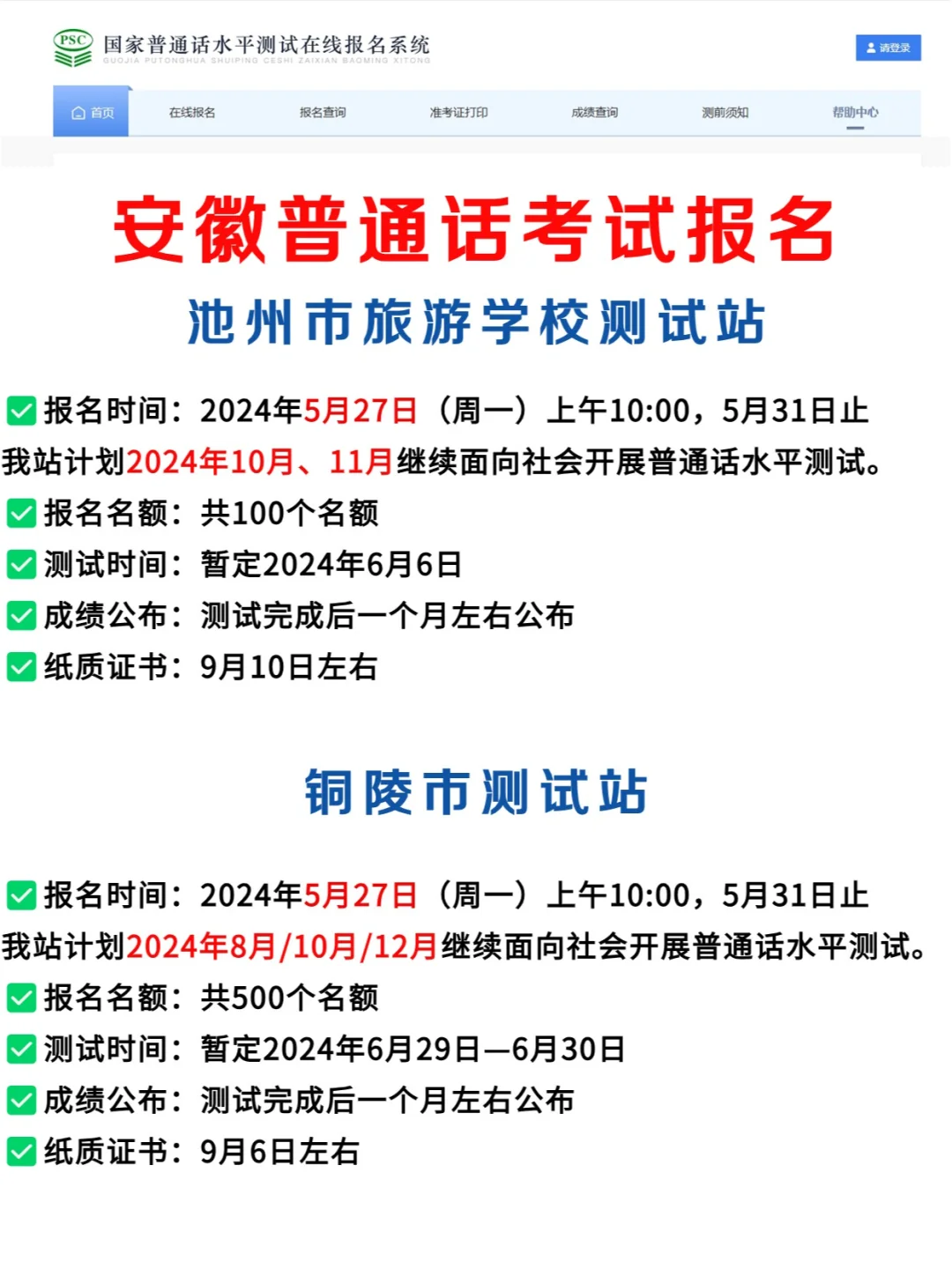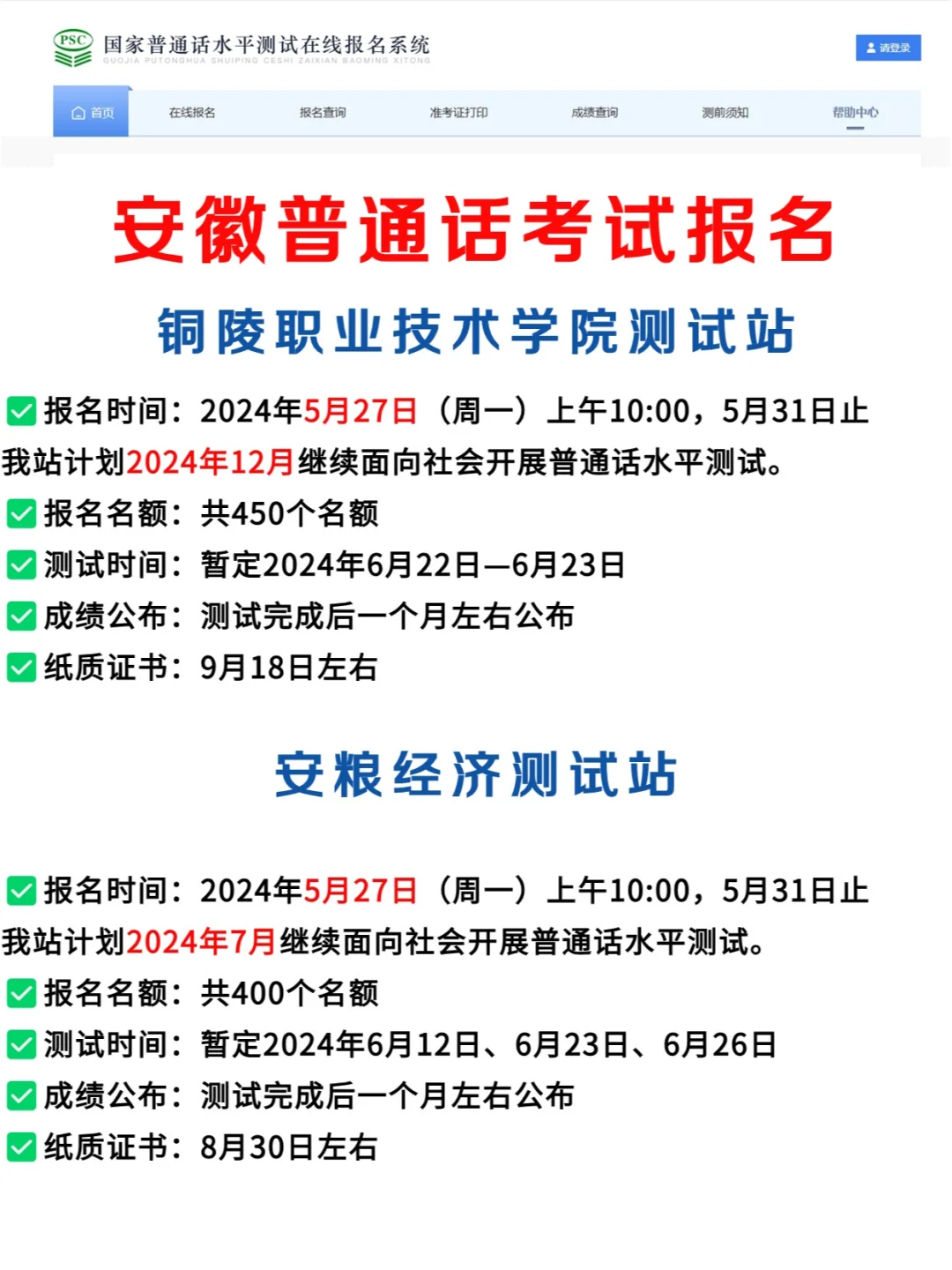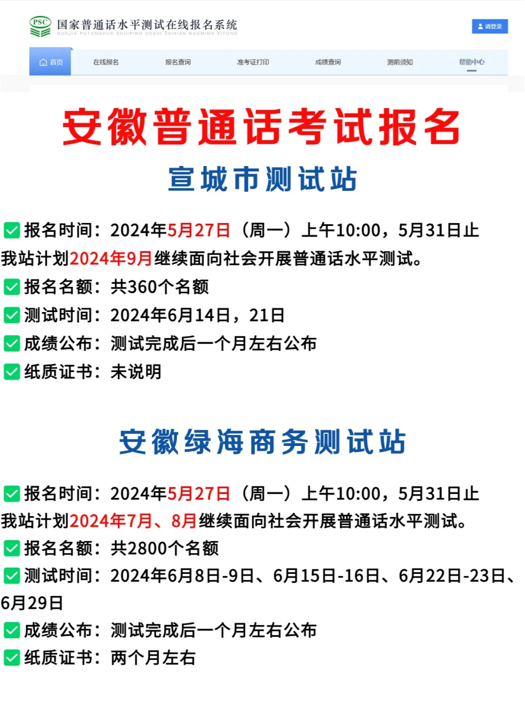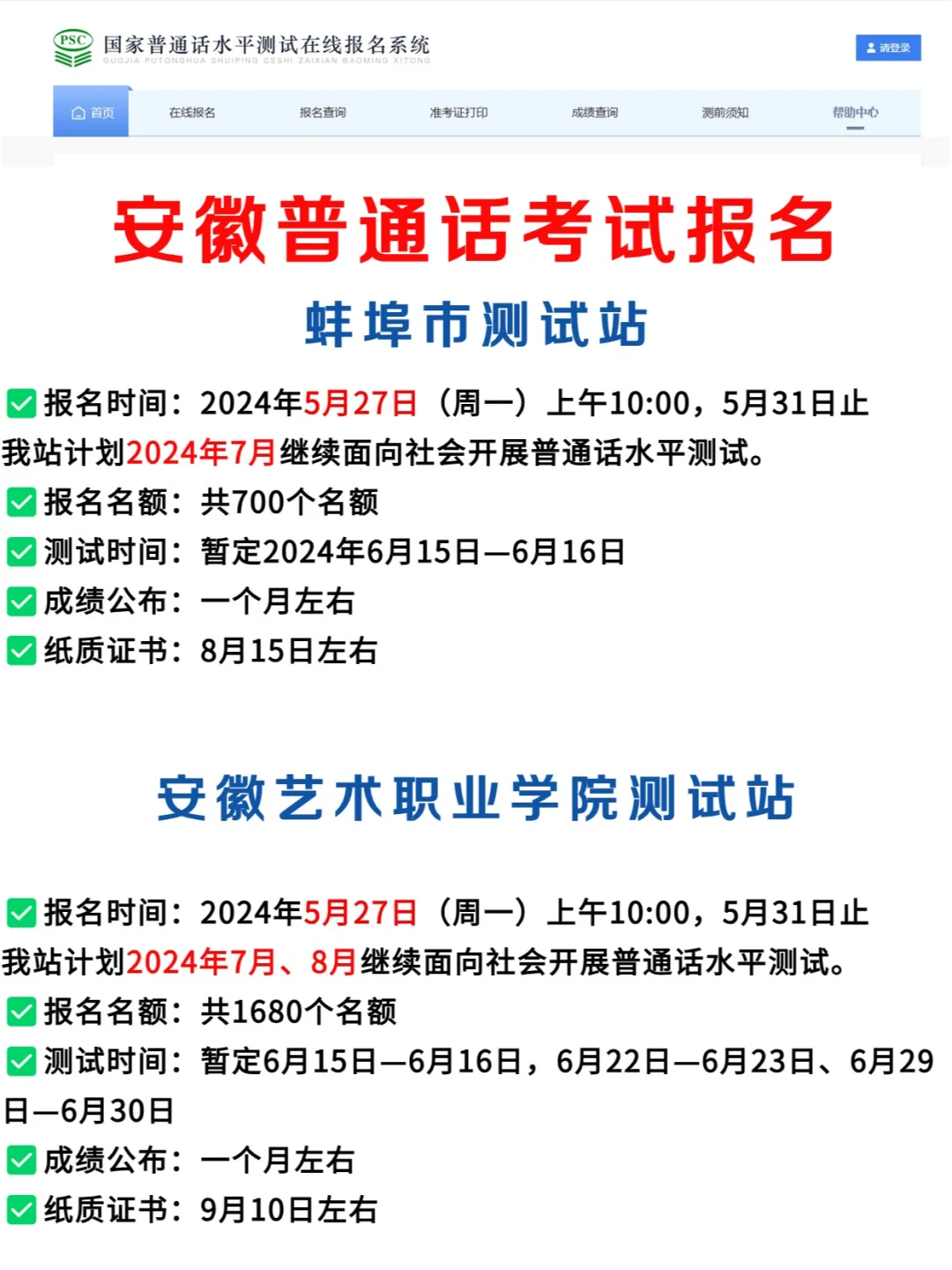 安徽5月份普通话考试汇总