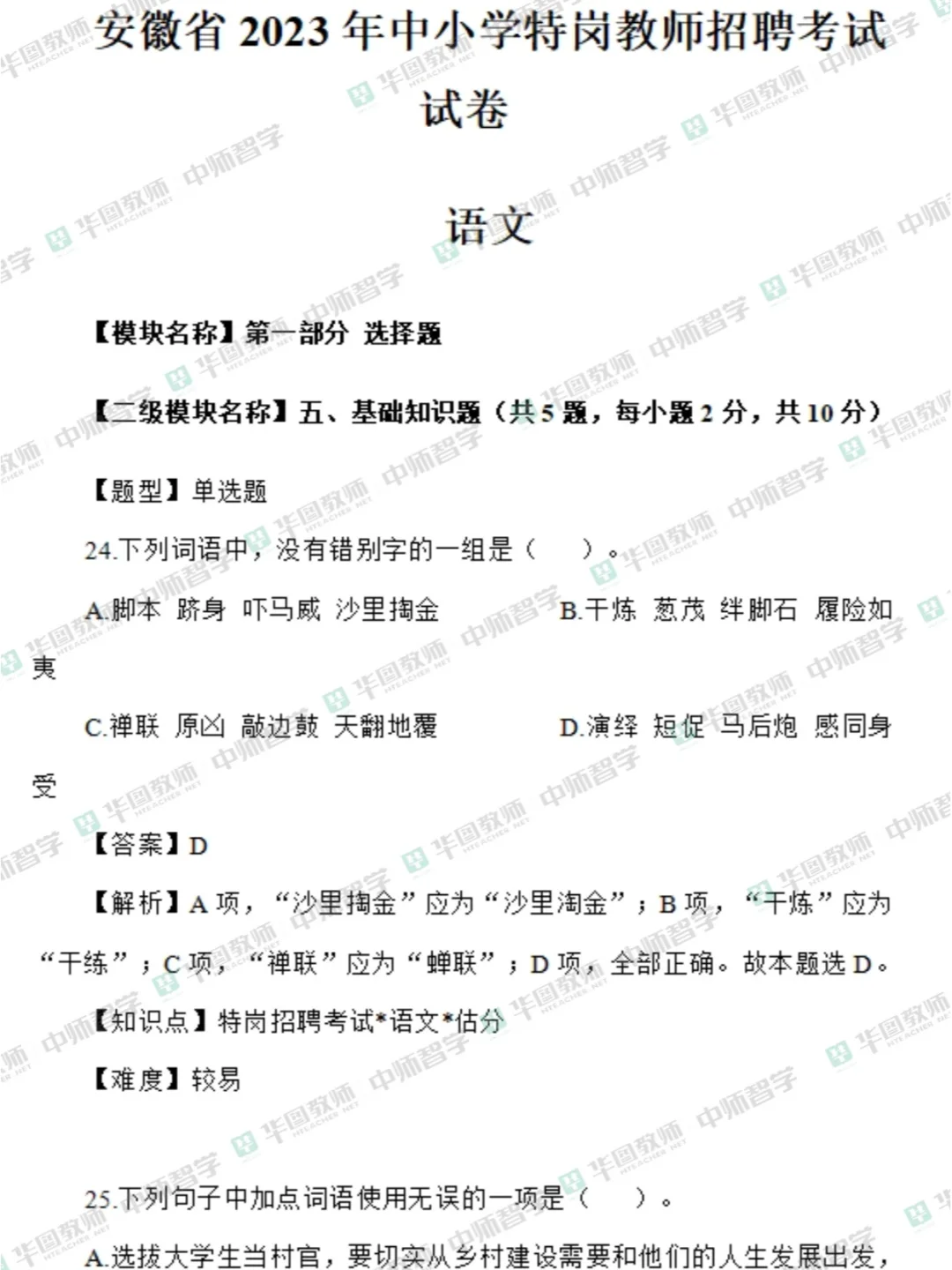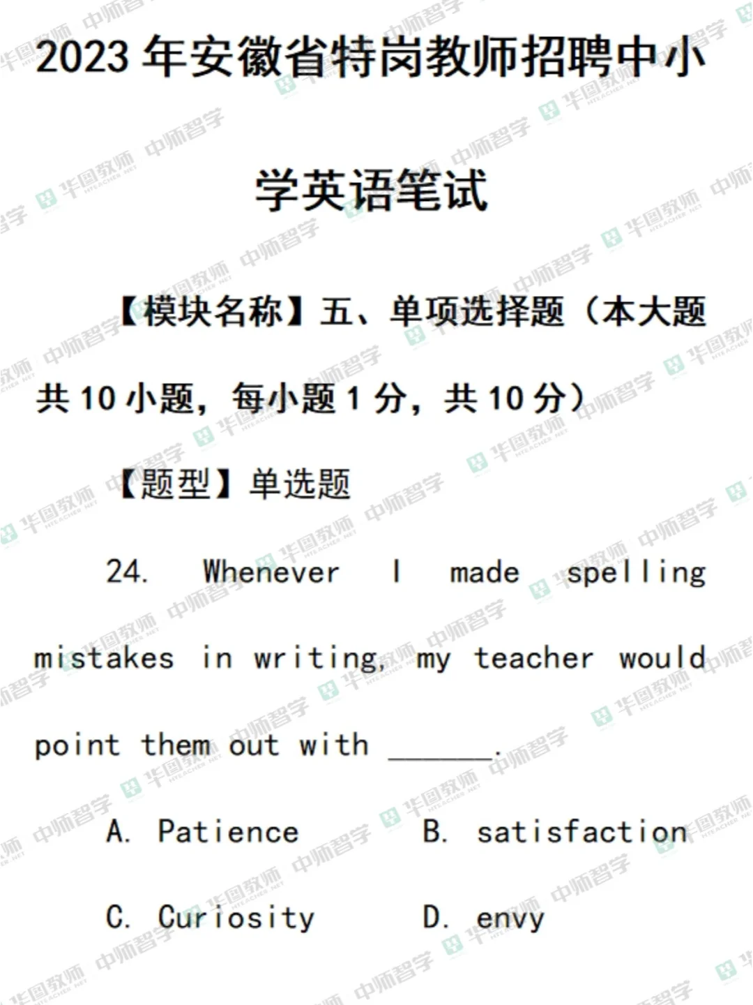 安徽特岗教师招聘往年试题【语数英音体美】