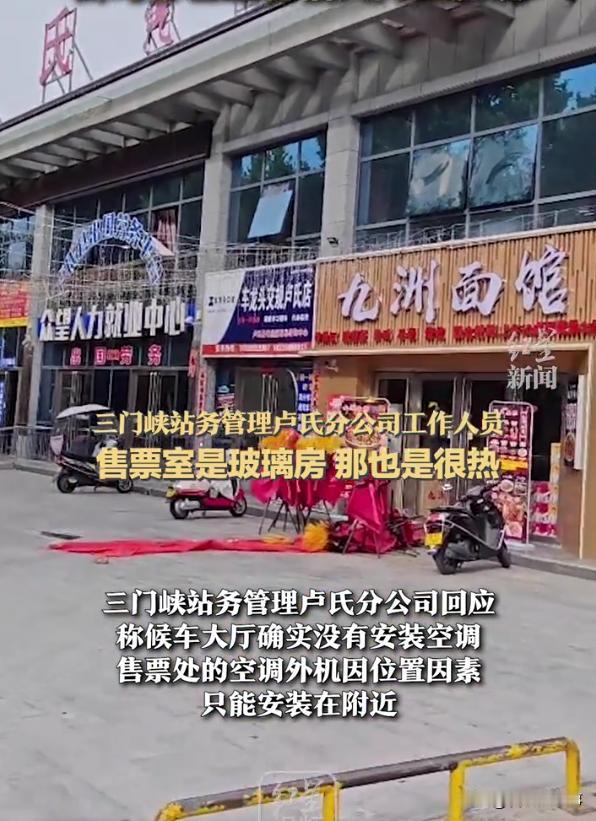 此事被曝光到网上后,服务站的工作人员做出解释,称售票室是玻璃房,那里面也很热,但因为空间限制,只能将空调外机挂在附近,他们装的很高,有2米5以上