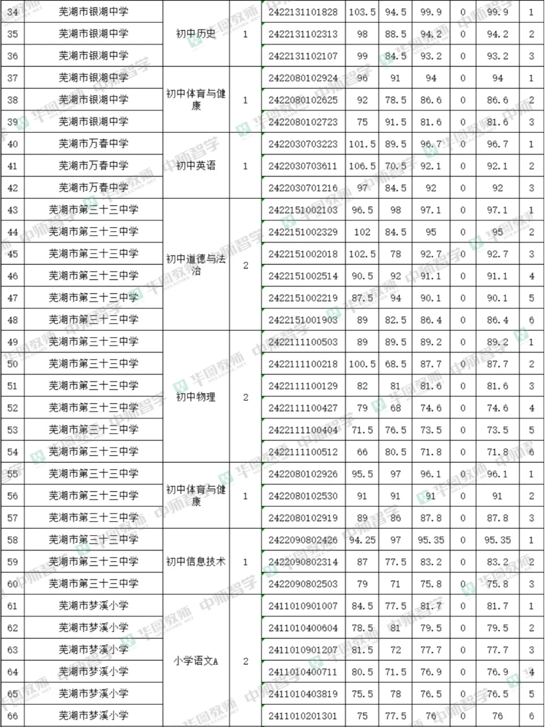 芜湖教招排名出了!就是说今明两天吧