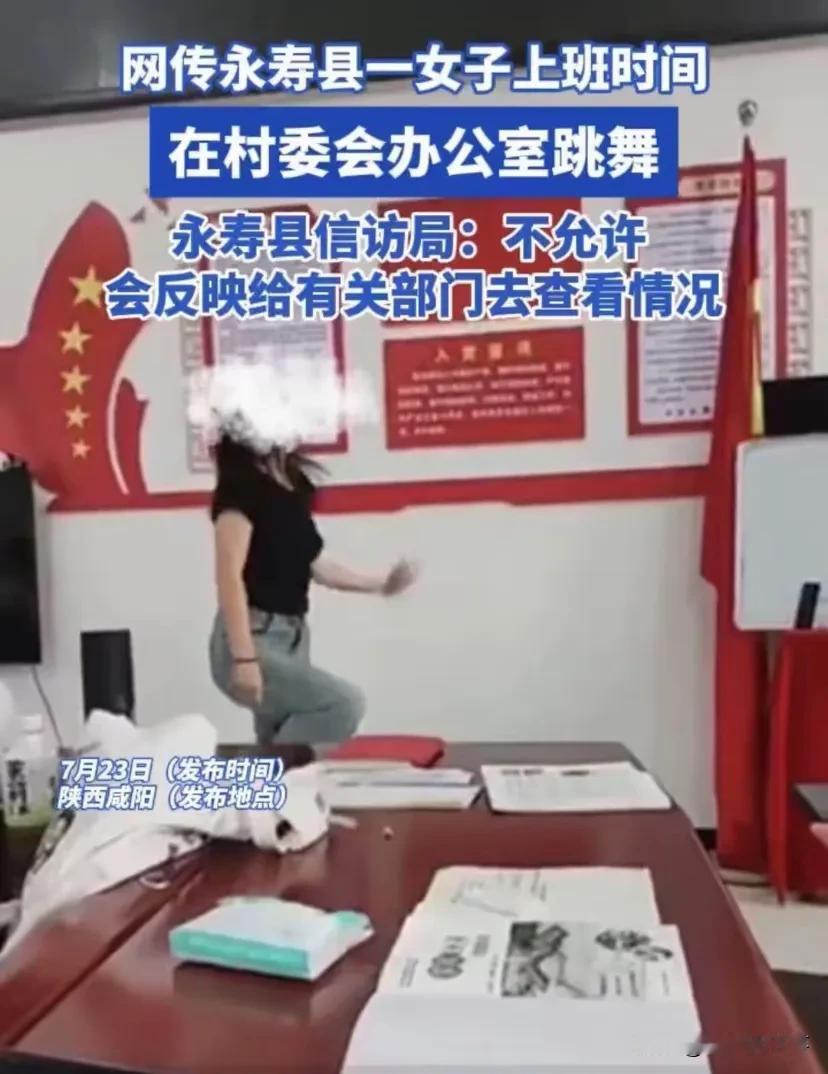 村干部上班时间跳热舞?陕西咸阳永寿县,一女子在村委办公室内,播放着音乐大跳热舞,视频传到网上后,立刻就有人质疑:办公室跳舞是给谁看?不过,很快当地人社局就回应此事:是误会,只是跳舞娱乐