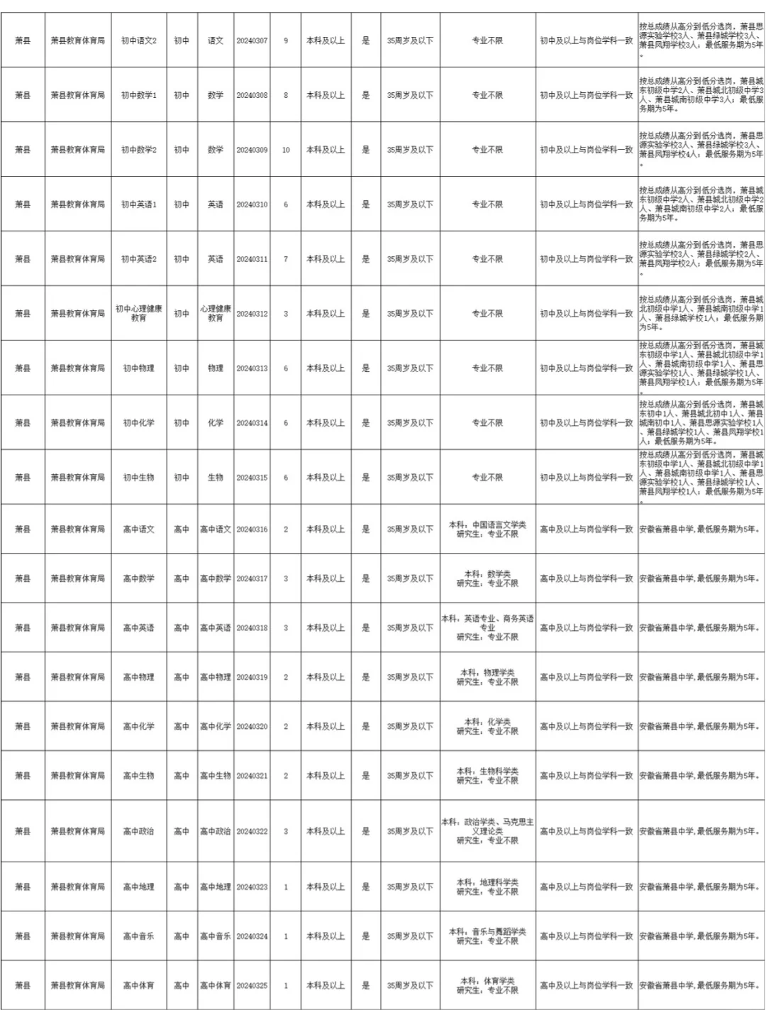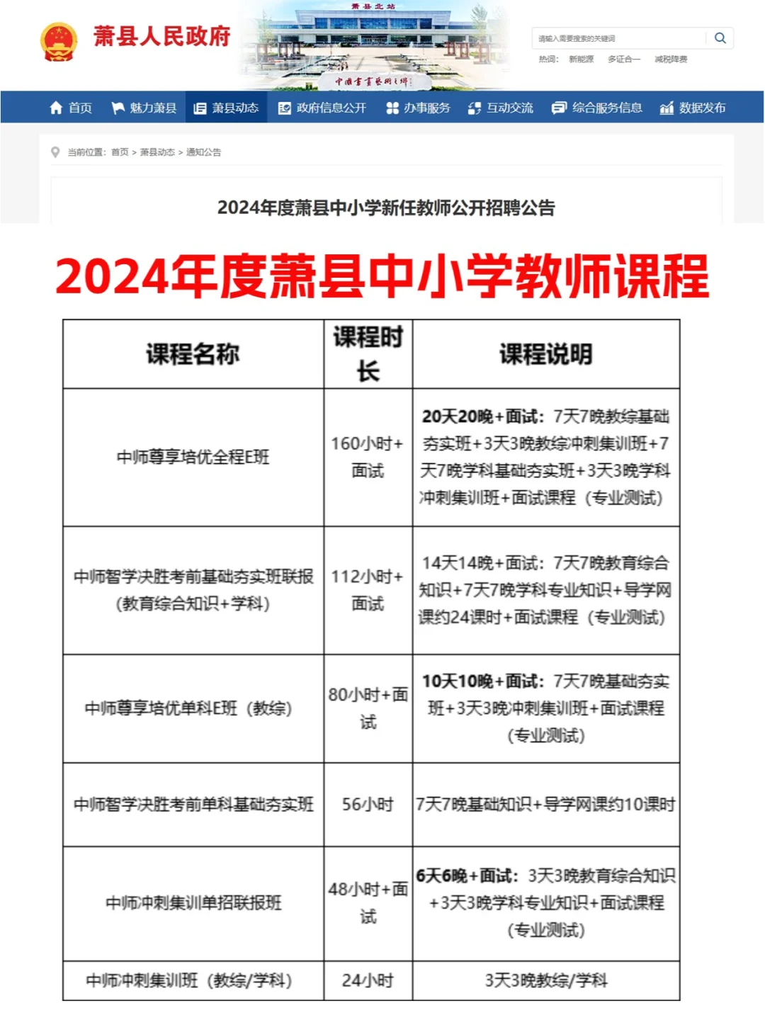 24年萧县中小学教招公告&课程