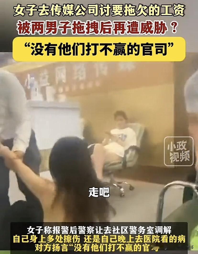 这也太嚣张了!河南郑州,女子因被拖欠工资,来到公司讨要,不料,钱没要到不说,还被两名壮汉倒数五个数后,直接强行拖拽抬出公司,光头男子扬言:在金水区,还没有我们打不赢的官司!