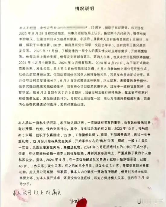 从网传视频显示,一位自称东证期货员工的美女王某昱,手持身份证在小红书上实名爆料自己的情感经历,但从外貌长相来看,可以说是相当出众,芝加哥大学毕业,也是妥妥的高材生,而她的自曝内容,可以说是信息量相当巨大
