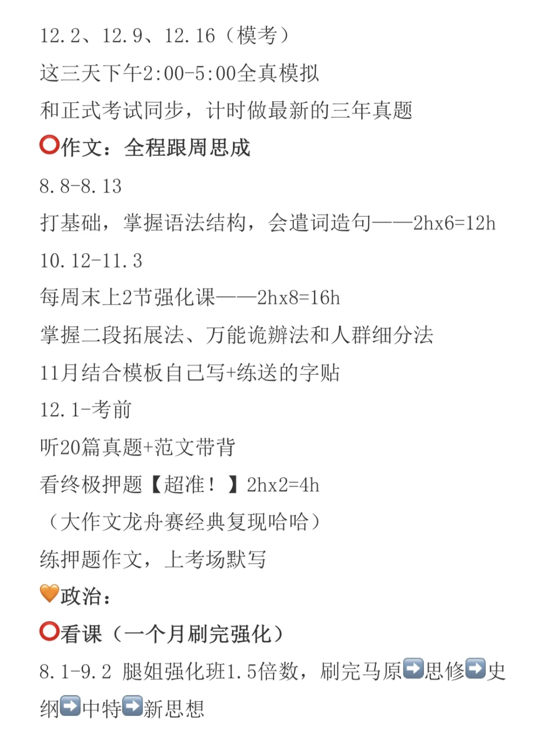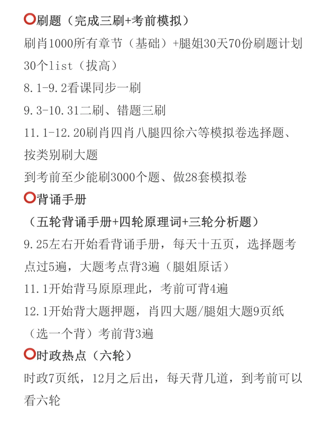 9.25左右开始看背诵手册,选择题考点过5遍,大题考点背3遍(腿姐原话)