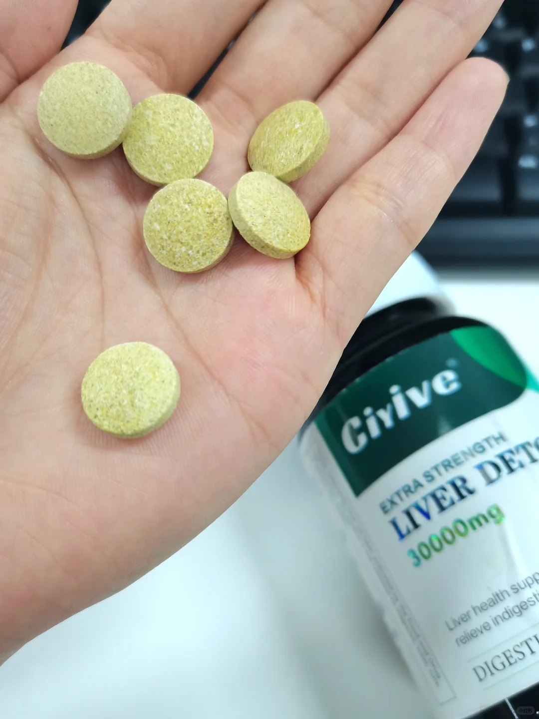 Ciyive护肝片成分有水飞蓟500mg、VE 112mg、洋蓟提取物50mg、姜黄根提取物50mg、蒲公英提取物20mg、谷胱甘肽20mg养肤和养肝并存一天只用随餐一粒,方便又容易坚持