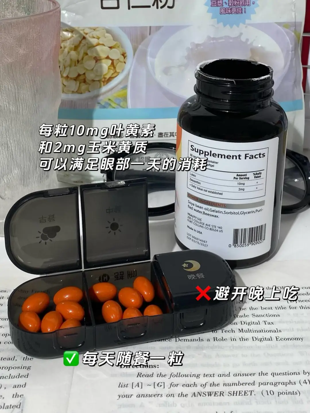 除了饮食上多吃含叶黄素的果蔬外,我还每天一粒Ciyive叶黄素,比较方便一些,每粒10mg的叶黄素和2mg的玉米黄质,能满足眼部一天的消耗。