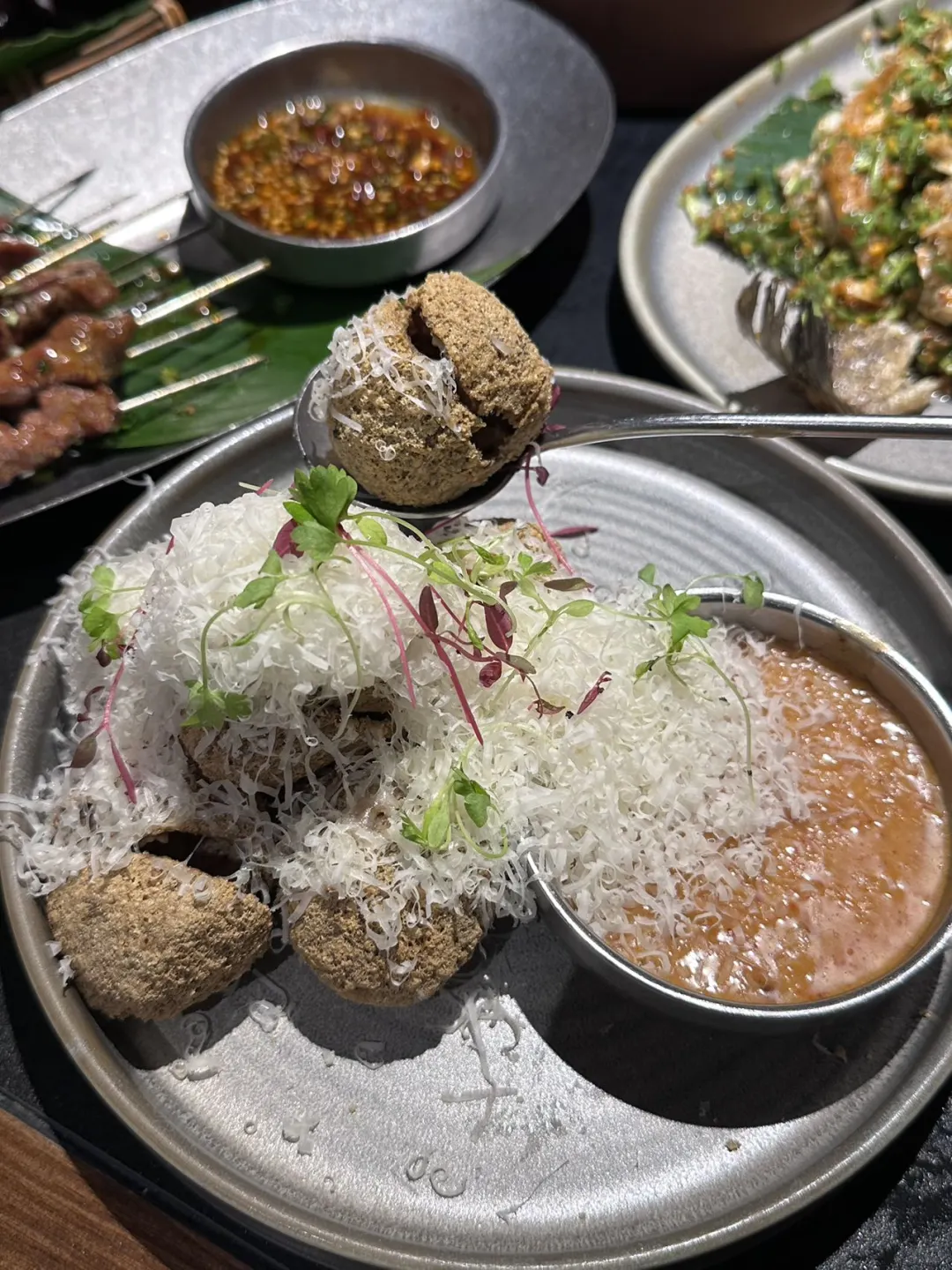 很有地方特色,豆腐丸子炸的外酥里嫩,配上秘制蘸水,好香~