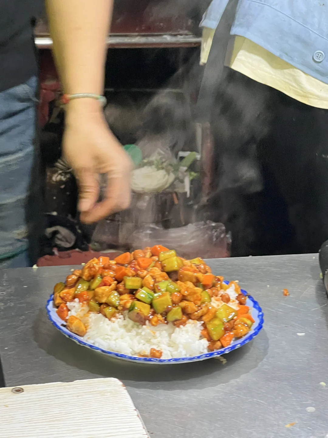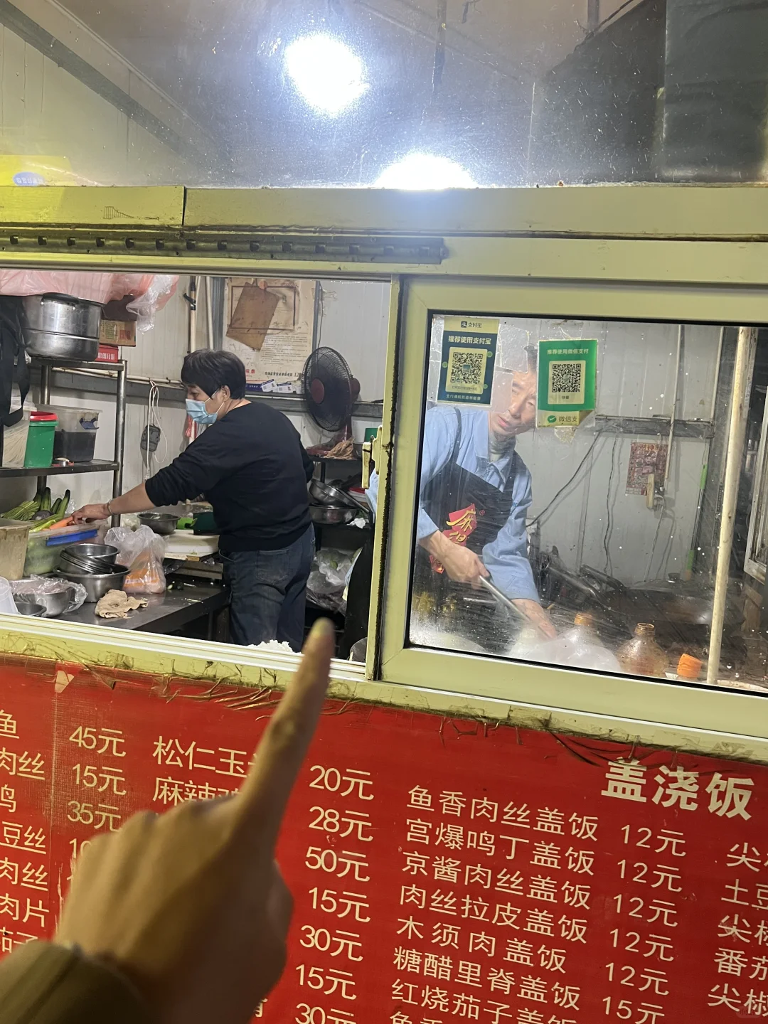 鱿鱼北面有个小路进去有家盖浇饭没有名字,但是每个都是现炒!价格很亲民!