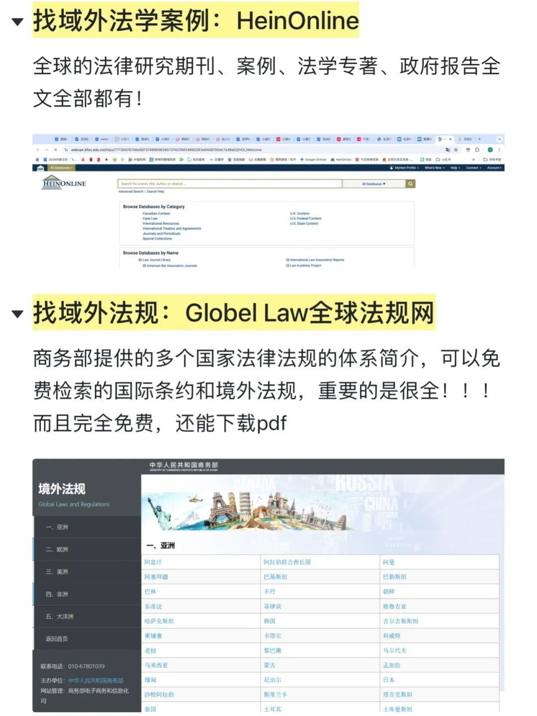 全球的法律研究期刊、案例、法学专著、政府报告全文全部都有