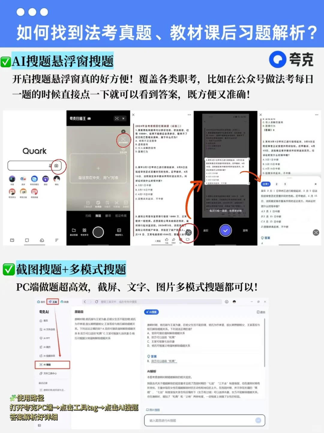 路径:打开夸克PC端→点击工具tag→点击AI搜题就可以使用,而且答案解析好详细