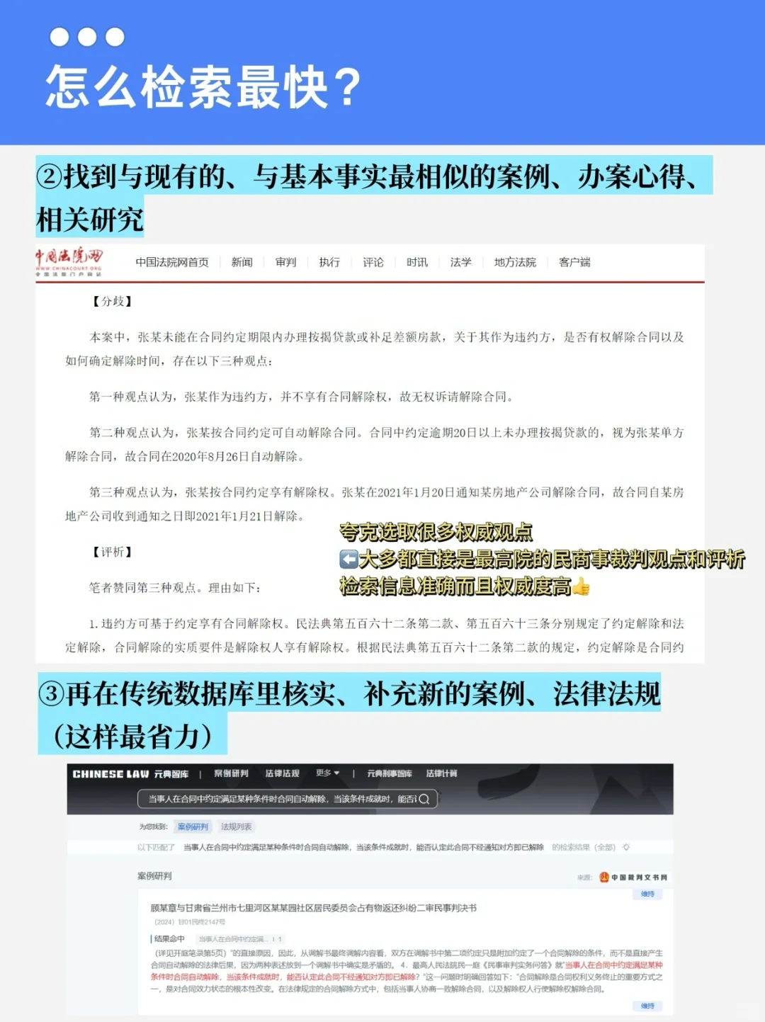 ②找到现有的与基本事实最相似的案例、办案心得、相关研究