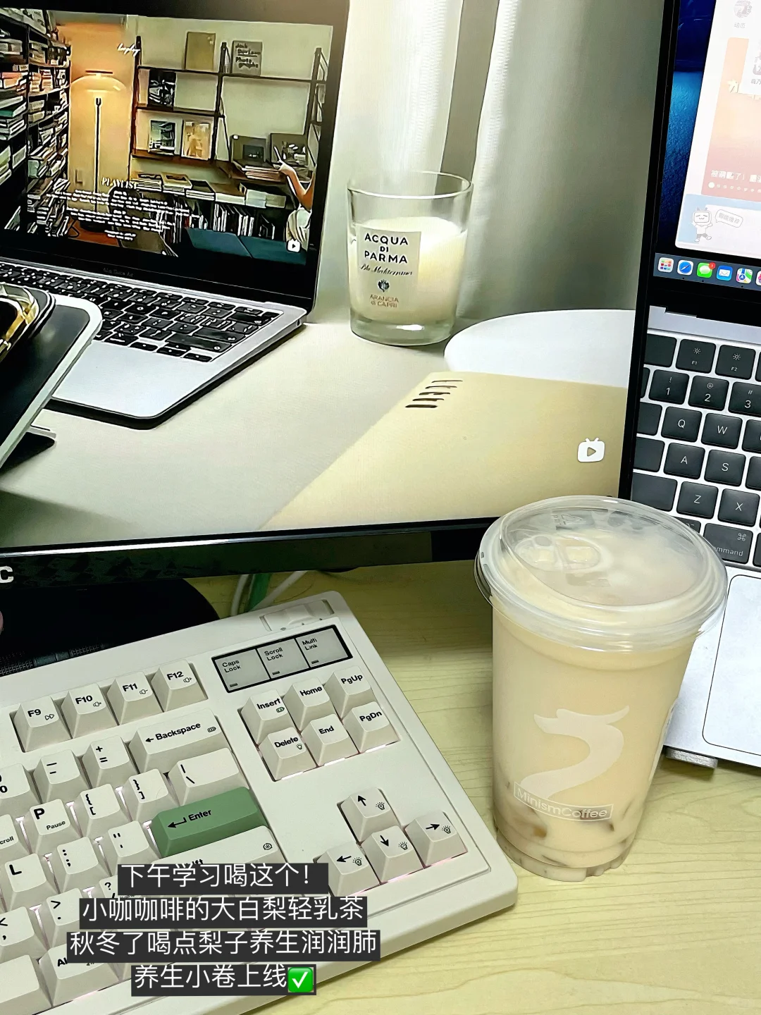 正好这两天秋冬降温,整一杯大白梨润润嗓子。不得不说小咖做茶咖有一套的,一口下去先是咖啡的苦,但是又能尝到现泡原叶茶的茶香,而且这双重提神小卷直接状态顶满再学3h!