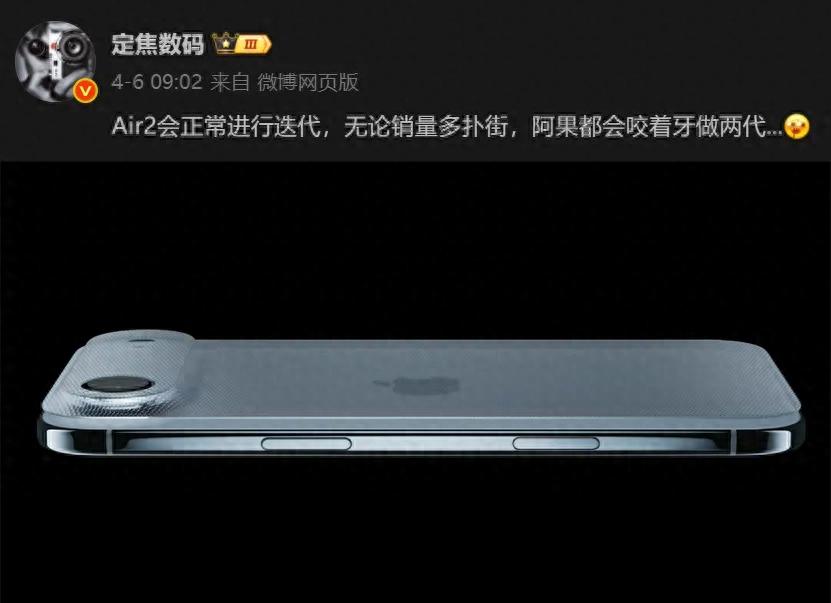然而据博主@定焦数码近日爆料,iPhone Air的惨淡销量并没有让苹果妥协,迭代的新款Air 2不会取消,反而已经在研发的路上了。