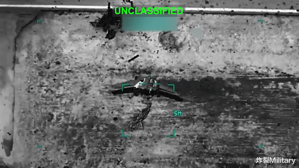 4月2日,美国中央司令部发布了一段汇总视频,展示了使用攻击无人机打击各类伊朗装备的画面。视频中有一幕,可以看到一架大型飞翼布局无人机在地面上被摧毁。