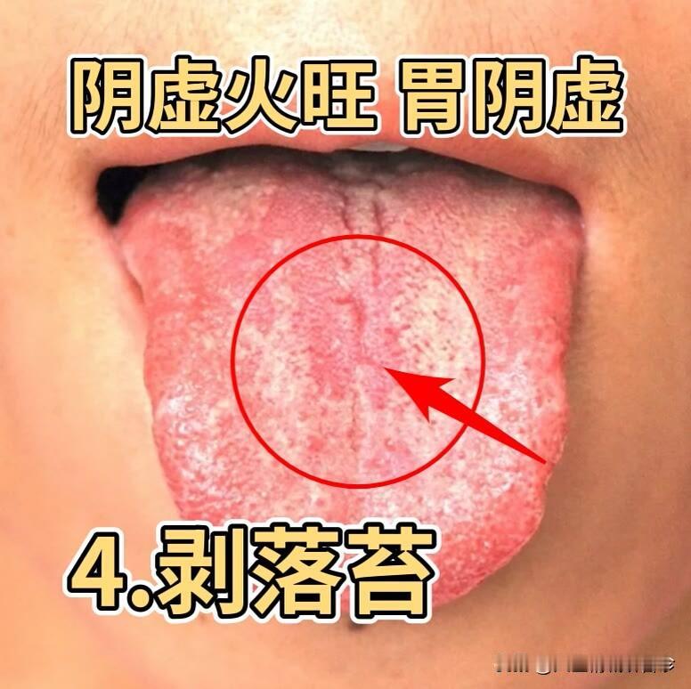 舌象:有舌苔,但是局部有舌苔,或者全部消失