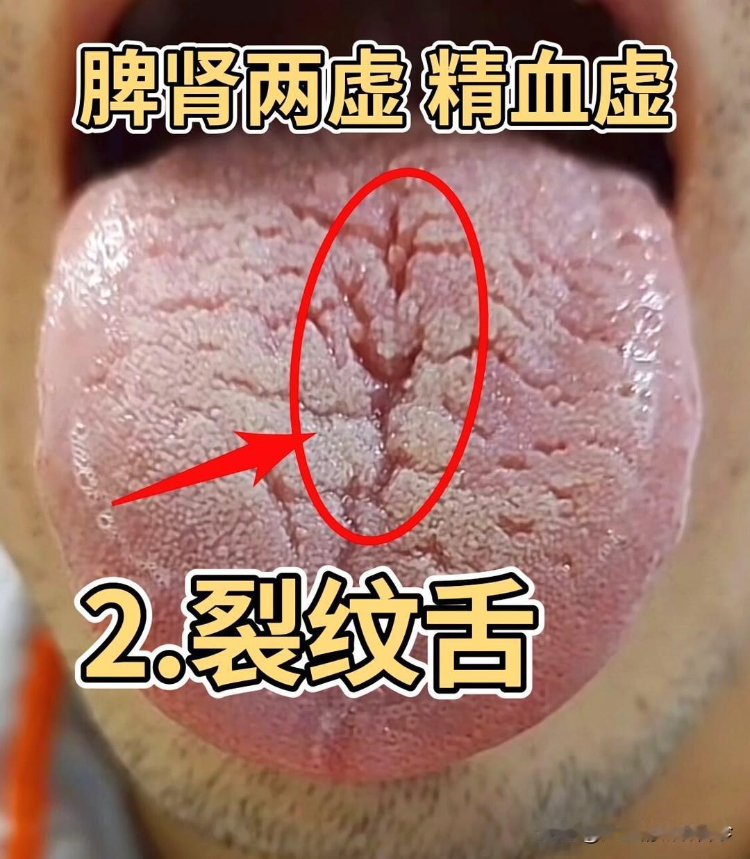 舌象:舌上小裂纹很多,像大地缺水一样