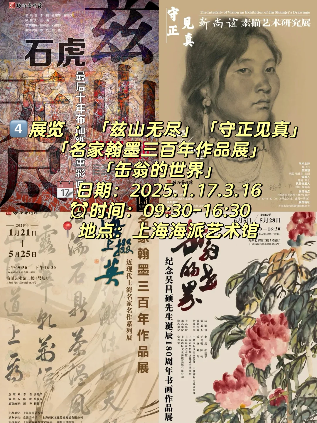 4️⃣展览 :「兹山无尽」「守正见真」「名家翰墨三百年作品展」「缶翁的世界」