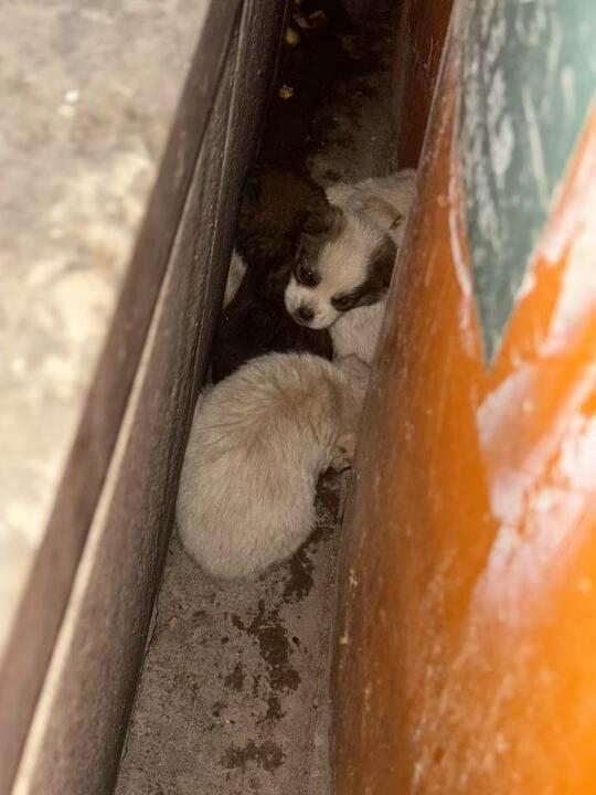 坐标盐城亭湖区,发现者是个来考试的学生,没有能力领养,被救助基地先带回去安顿了,基地大姐很难很难,已经700多只狗了,希望狗狗们都能有个家[合十R][合十R]