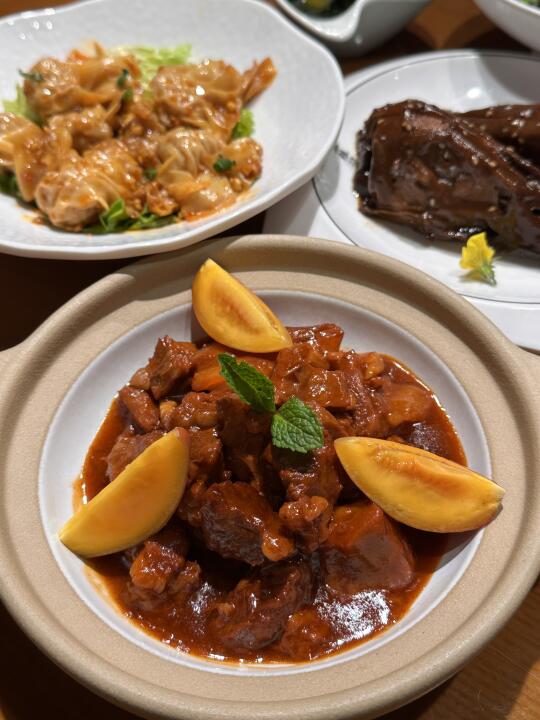 牛肝菌拌饭里面用了一些五谷杂粮所以吃起来口感很劲道,加上酸甜的番茄牛腩,口感好丰富!
