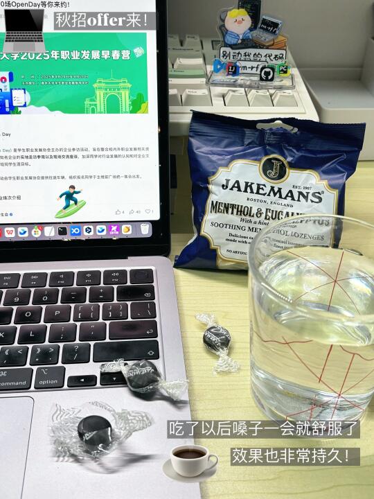 好在这两天买了Jakemeans的润喉糖,嗓子难受了就来上两粒
