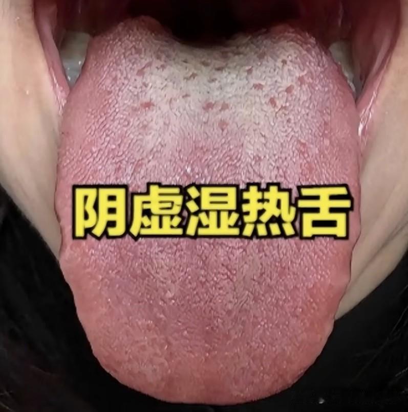 表现:舌面苔黄厚腻,有小红点,舌质红,身体怕热,烦躁,头面部出油;