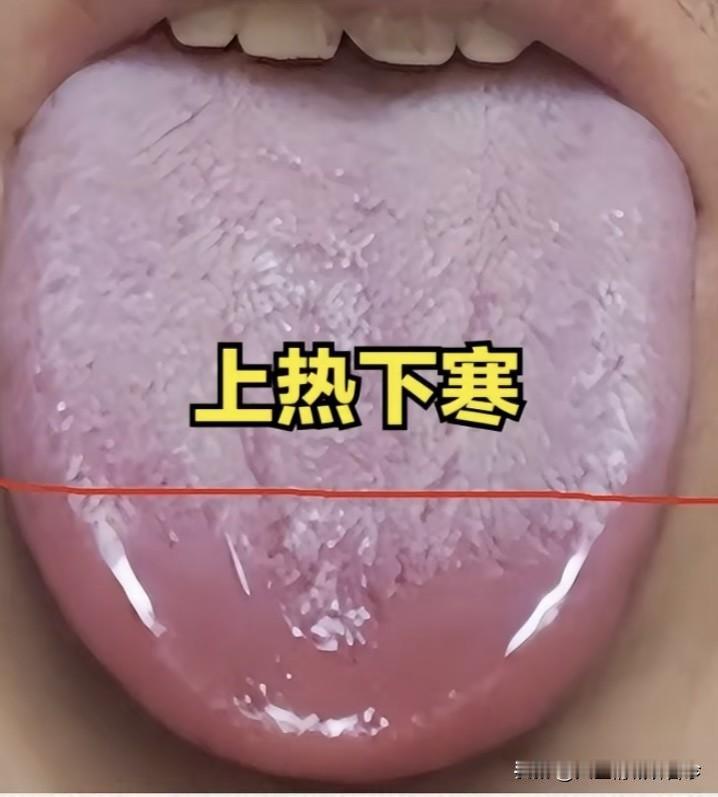 表现:舌头上半部分白滑,下半部分发红,身体不光怕冷还怕热,反反复复上火,就是不见好;