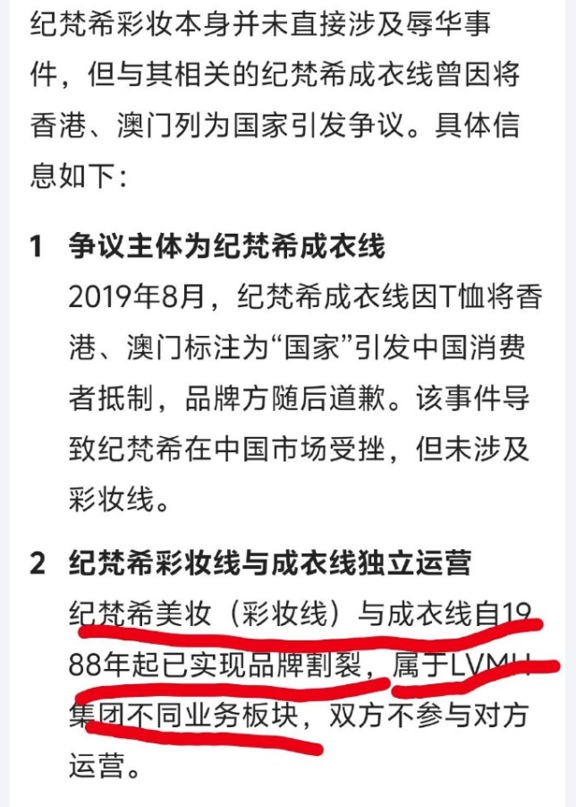粉丝一直解释说和纪梵希是两个品牌,大可不必,万一过几天把纪梵希成衣也给她代言,粉丝不傻眼了吗,有些品牌可能做过一些错事,但是只要不是死不悔改,只要改正了,国内没把这牌子轰出国门,那就可以代言,真正有问题的牌子,都用不着内娱出手。