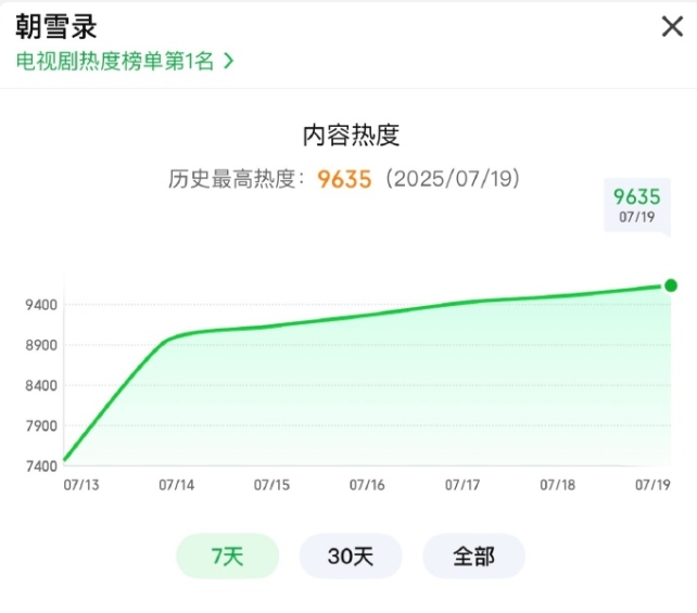 最高热度已经超越《书卷一梦》,而且至今没出现跌幅,也没有横盘,一直都是微微上涨,按照目前势头来看,最终热播期云合集均也会超过《书卷一梦》,有望超过《临江仙》。