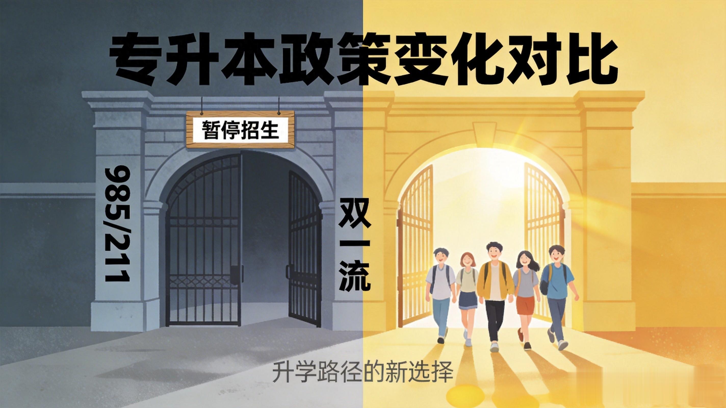 2025年起,教育部明确推动"双一流"建设高校回归学术研究主阵地,985、211院校大规模停招专升本。清华、北大、南大、浙大……这些名字,从此跟专升本彻底说了再见。
