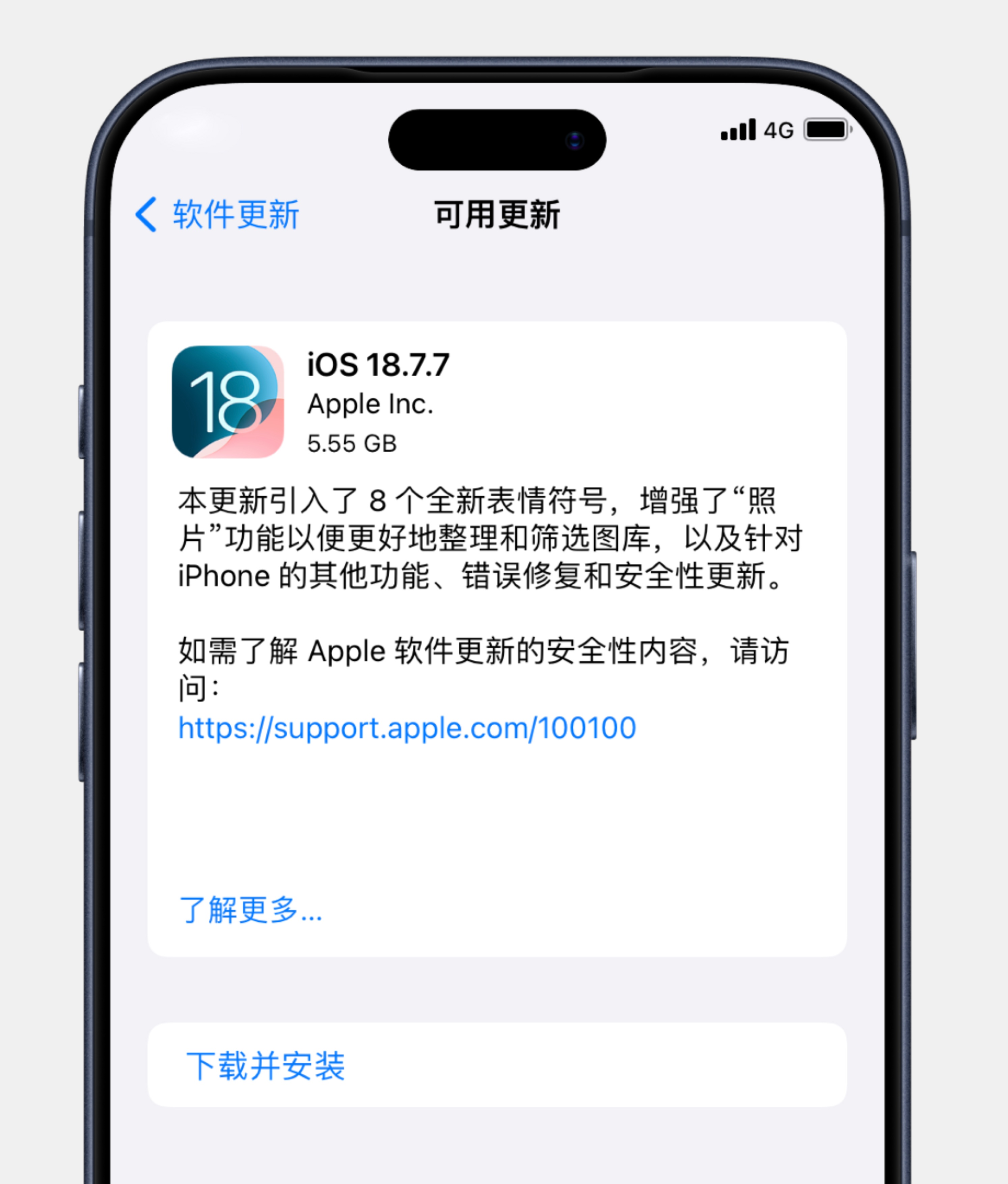 新版iOS 18.7.7 适用于未升级至iOS 18.7.7 和iOS 26 且兼容的旧系统用户;