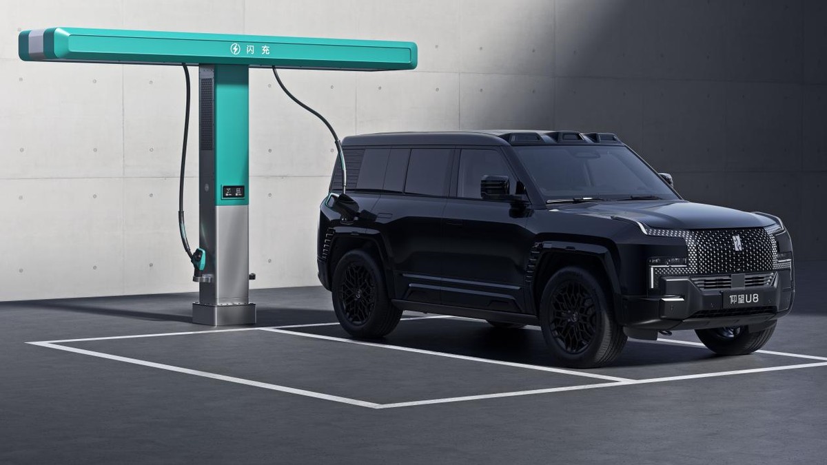 对于新能源硬派越野而言,补能效率始终是决定出行半径与用户信心的核心痛点。2026款仰望U8引入了专为新能源越野混动车型打造的“闪充技术”,这一技术深度融合了“高电压+大电流+高倍率电池”三大核心能力。在800V高压平台的强力支持下,新车的峰值充电功率达到了惊人的574kW,配合具备9C充电倍率的新型电池,实现了跨代级的补能革新。