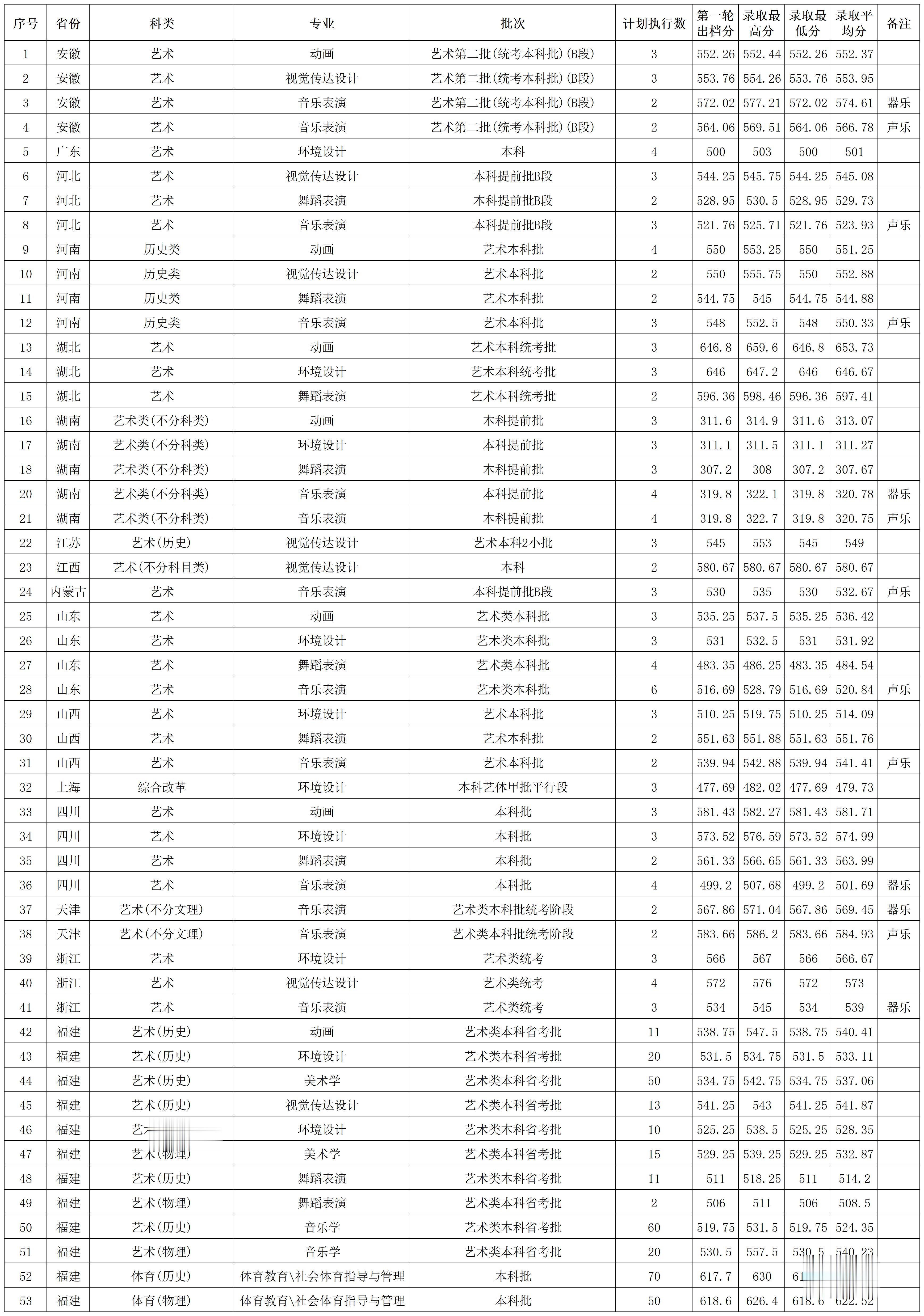 集美大学2025年艺术、体育类在各省各专业录取分数线