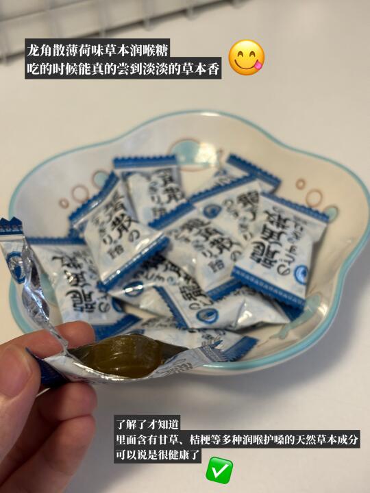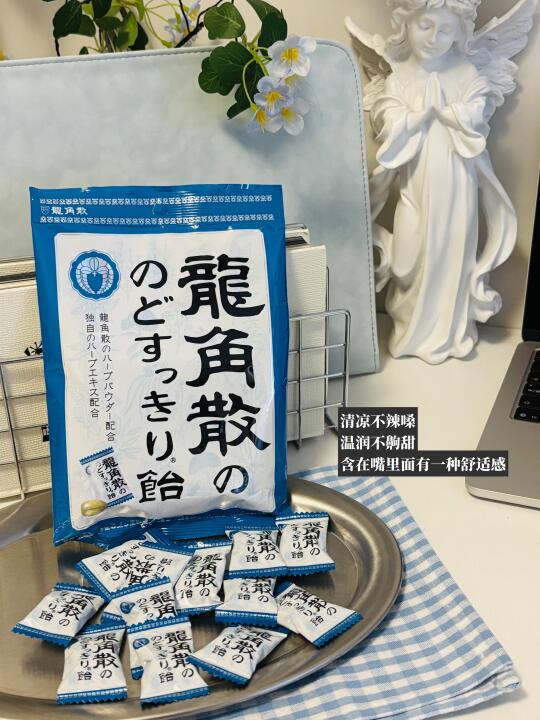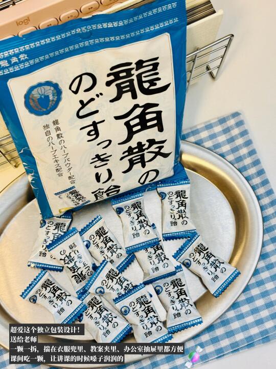 ●先选了龙角散薄荷味草本润喉糖,独立小包装揣兜很方便。含嘴里有种清清凉凉的薄荷感,像给喉咙敷了层温润的保护膜。仔细看成分表才发现,里面有甘草、桔梗这些养嗓子的草本,还有金银花、菊花这些清热的成分,老师讲课累了含一颗,既能缓一缓又方便~